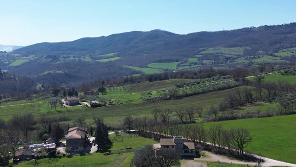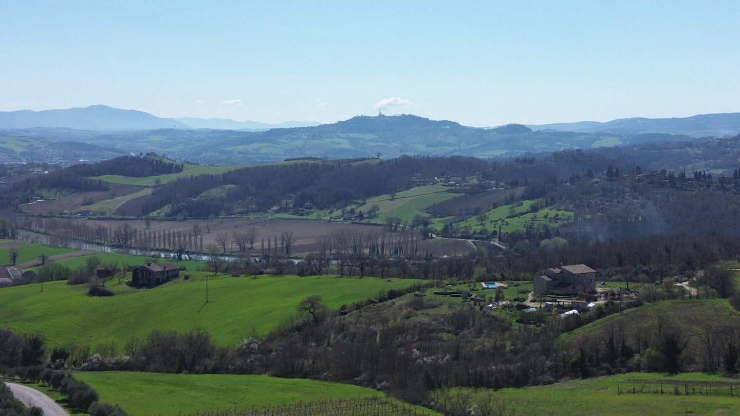 Panorama-Steinbauernhaus mit Blick auf Todi und Monte Castello di Vibio