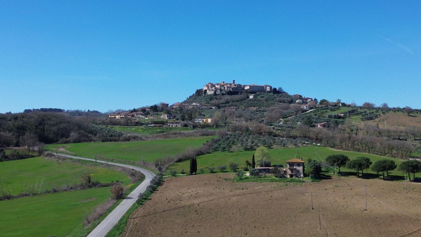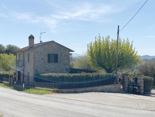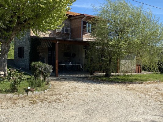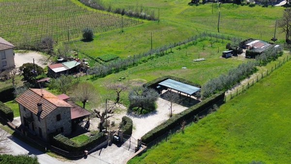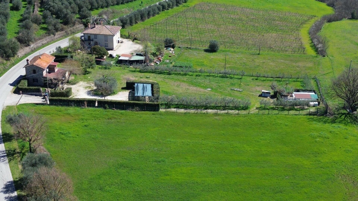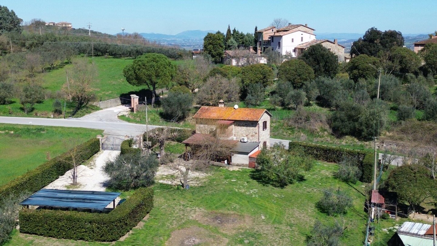 Traditionelles steinernes Bauernhaus von 150 m², gelegen in einer Panoramahügellage in Umbrien. Das Grundstück erstreckt sich über zwei Ebenen: Im Erdgeschoss gibt es einen gemütlichen Wohnbereich mit Esszimmer, Wohnzimmer mit Kamin, große Panoramaveranda sowie Keller und Lagerhaus. Eine Steintreppe führt in das Obergeschoss, in dem sich zwei ruhige Schlafzimmer und ein Badezimmer befinden. Äußerlich ist das Grundstück von einem Grundstück von 5.000 Quadratmetern mit etwa 30 Olivenbäumen umgeben, einem Anbau von 32 Quadratmetern, der derzeit als Carport genutzt wird und die Möglichkeit bietet, das bestehende Volumen zu erweitern.