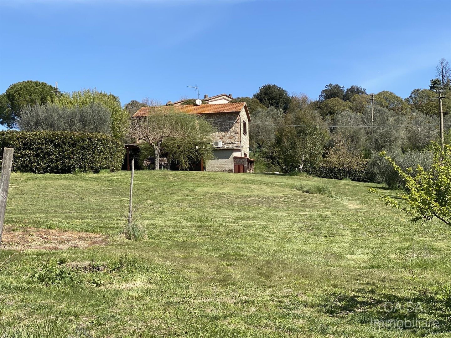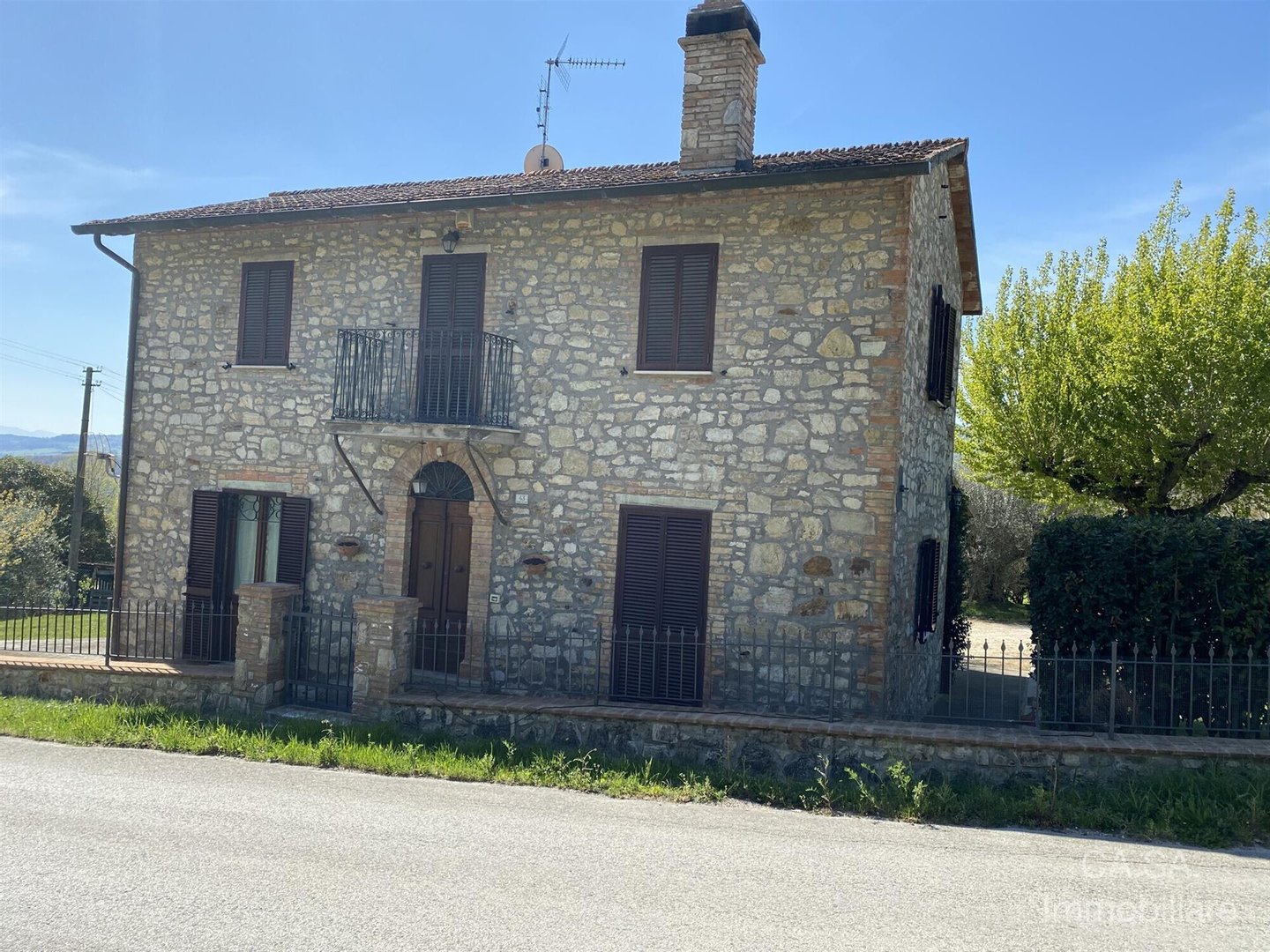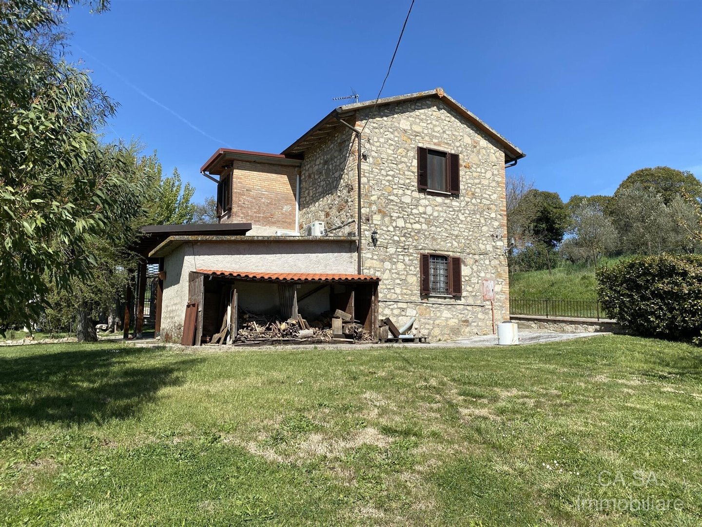 Traditionelles steinernes Bauernhaus von 150 m², gelegen in einer Panoramahügellage in Umbrien. Das Grundstück erstreckt sich über zwei Ebenen: Im Erdgeschoss gibt es einen gemütlichen Wohnbereich mit Esszimmer, Wohnzimmer mit Kamin, große Panoramaveranda sowie Keller und Lagerhaus. Eine Steintreppe führt in das Obergeschoss, in dem sich zwei ruhige Schlafzimmer und ein Badezimmer befinden. Äußerlich ist das Grundstück von einem Grundstück von 5.000 Quadratmetern mit etwa 30 Olivenbäumen umgeben, einem Anbau von 32 Quadratmetern, der derzeit als Carport genutzt wird und die Möglichkeit bietet, das bestehende Volumen zu erweitern.