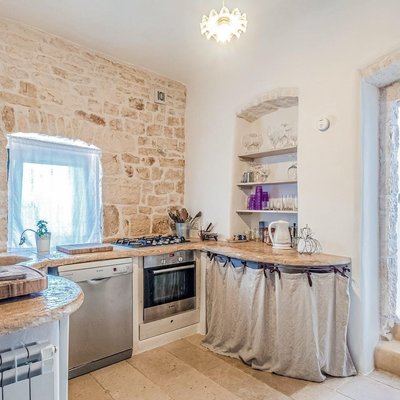 Eingetaucht in die magische Umgebung des Itria-Tals, nur wenige Minuten vom Zentrum von Ostuni entfernt, ist diese Luxusvilla eine Oase voller Ruhe und Schönheit. Stellen Sie sich vor, Sie wachen mit dem Duft jahrhundertealter Olivenbäume auf und genießen eine atemberaubende Aussicht, die im blauen Horizont verloren geht. Sonnenlicht streichelt sanft die Steinoberflächen und authentische Trulli und schafft eine Atmosphäre der Wärme und Gemütlichkeit.