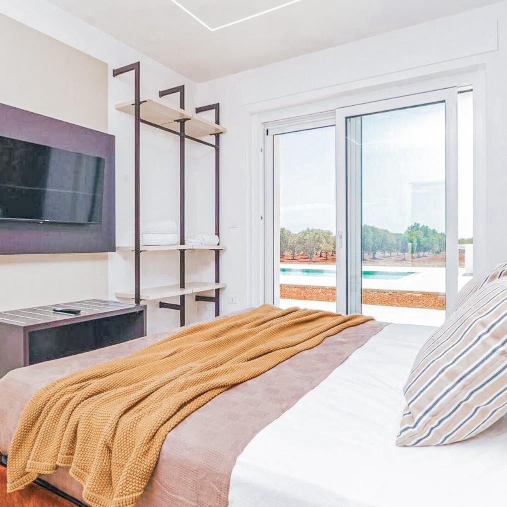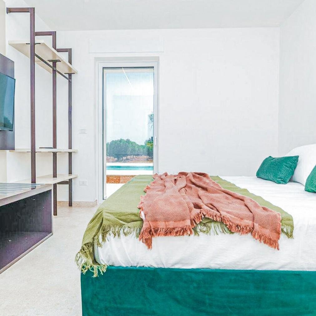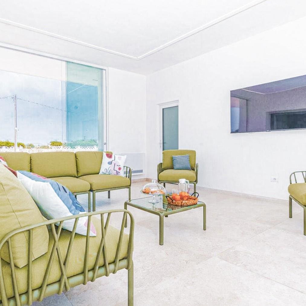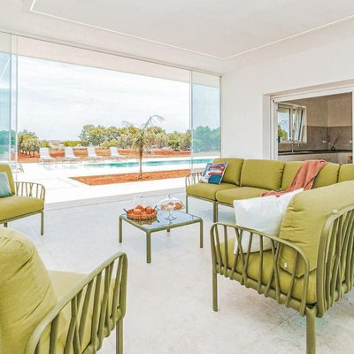 Eingebettet in die Ruhe der Landschaften von Carovigno ist diese wunderschöne Neubauvilla ein Rückzugsort voller Luxus und Gelassenheit. Morgens strömt sanft die Sonne durch die großen Fenster ins Innere, während die mediterrane Brise den von