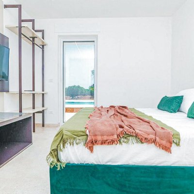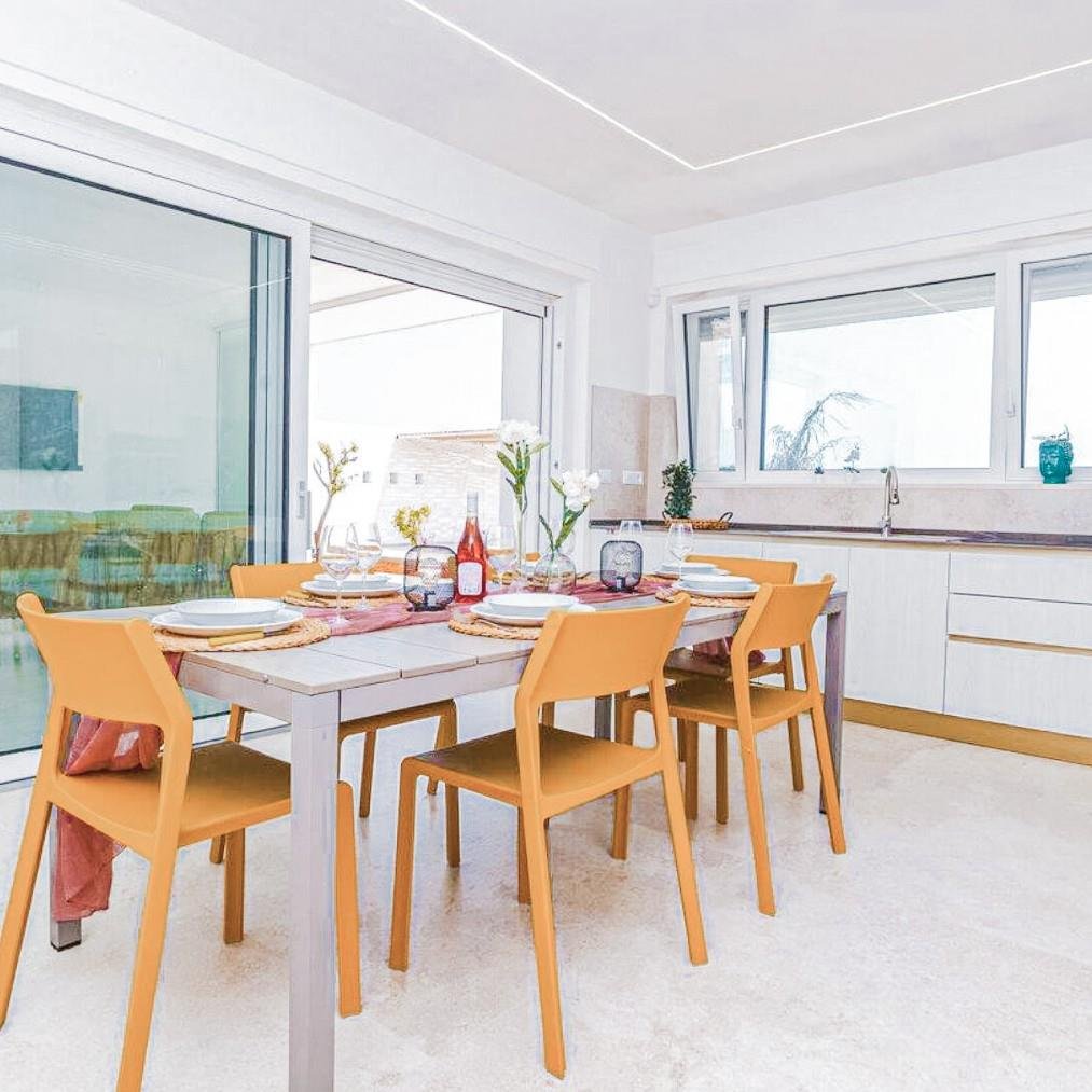 Stellen Sie sich vor, Sie verbringen Sommerabende am Pool, mit dem Mond, der sich im Wasser spiegelt, und dem sternenübersäten Himmel, der den Rahmen für Ihre Abendessen im Freien bildet. Die großen Fenster lassen natürliches Licht herein, wodurch eine helle und einladende Atmosphäre entsteht, während die Außenbereiche einen direkten Kontakt zur Natur ermöglichen.