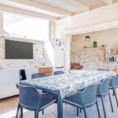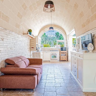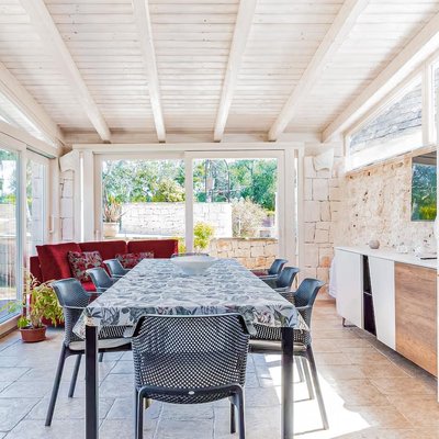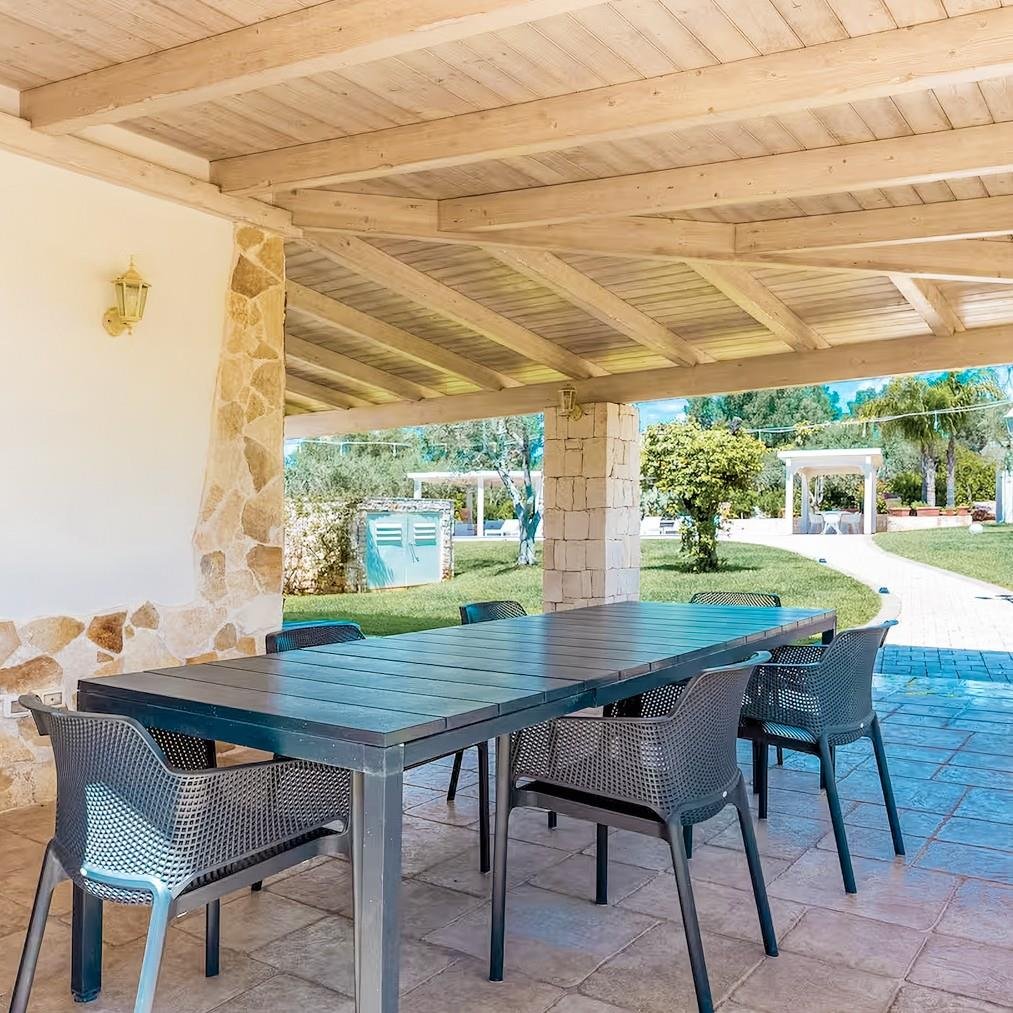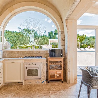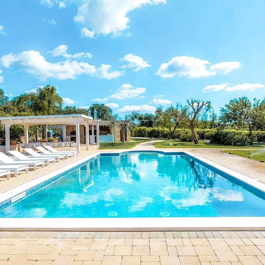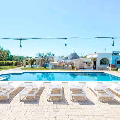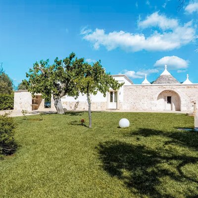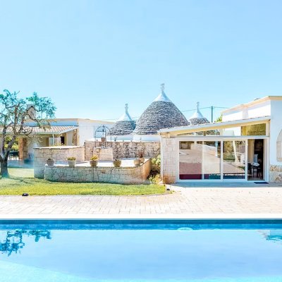 Das Grundstück, das sich über eine Ebene erstreckt und insgesamt 159 Quadratmeter umfasst, bietet eine perfekte Balance zwischen Authentizität und Modernität. Es umfasst insgesamt acht Zimmer, darunter fünf Schlafzimmer und zwei Badezimmer, verteilt auf zwei unabhängige Wohneinheiten, die durch einen zentralen steinernen Trullo verbunden und perfekt renoviert sind. Die Räume sind groß und hell und darauf ausgelegt, Komfort und Privatsphäre zu gewährleisten. Der gepflegte Garten mit privatem Schwimmbad und Solarium erstreckt sich über ein flaches Grundstück von etwa 2514 Quadratmetern und schafft eine Oase der Entspannung und Schönheit.