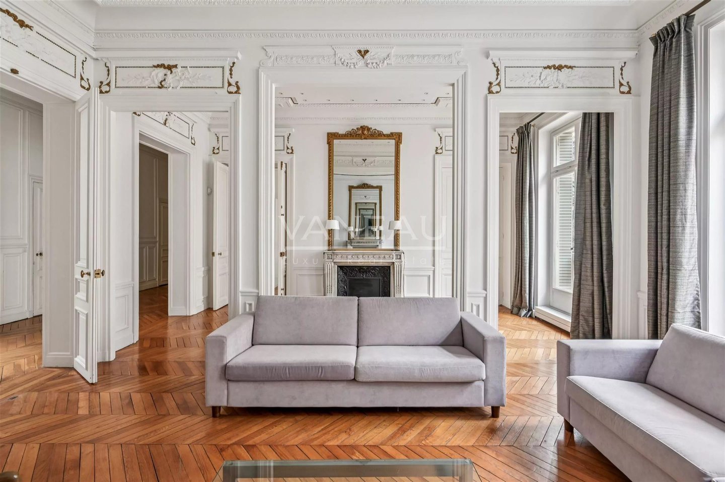 Diese Immobilie in ausgezeichnetem Zustand profitiert von einem idealen Grundriss, außergewöhnlichen Größen und einer schönen Leuchtkraft mit ihren großen, drei Meter hohen Fenstern. Es hat seine schönen historischen Merkmale bewahrt: Fischgrätparkettboden, Marmorkamine, Trumeaux, zeremonielle Spiegel und vergoldete Leisten.
