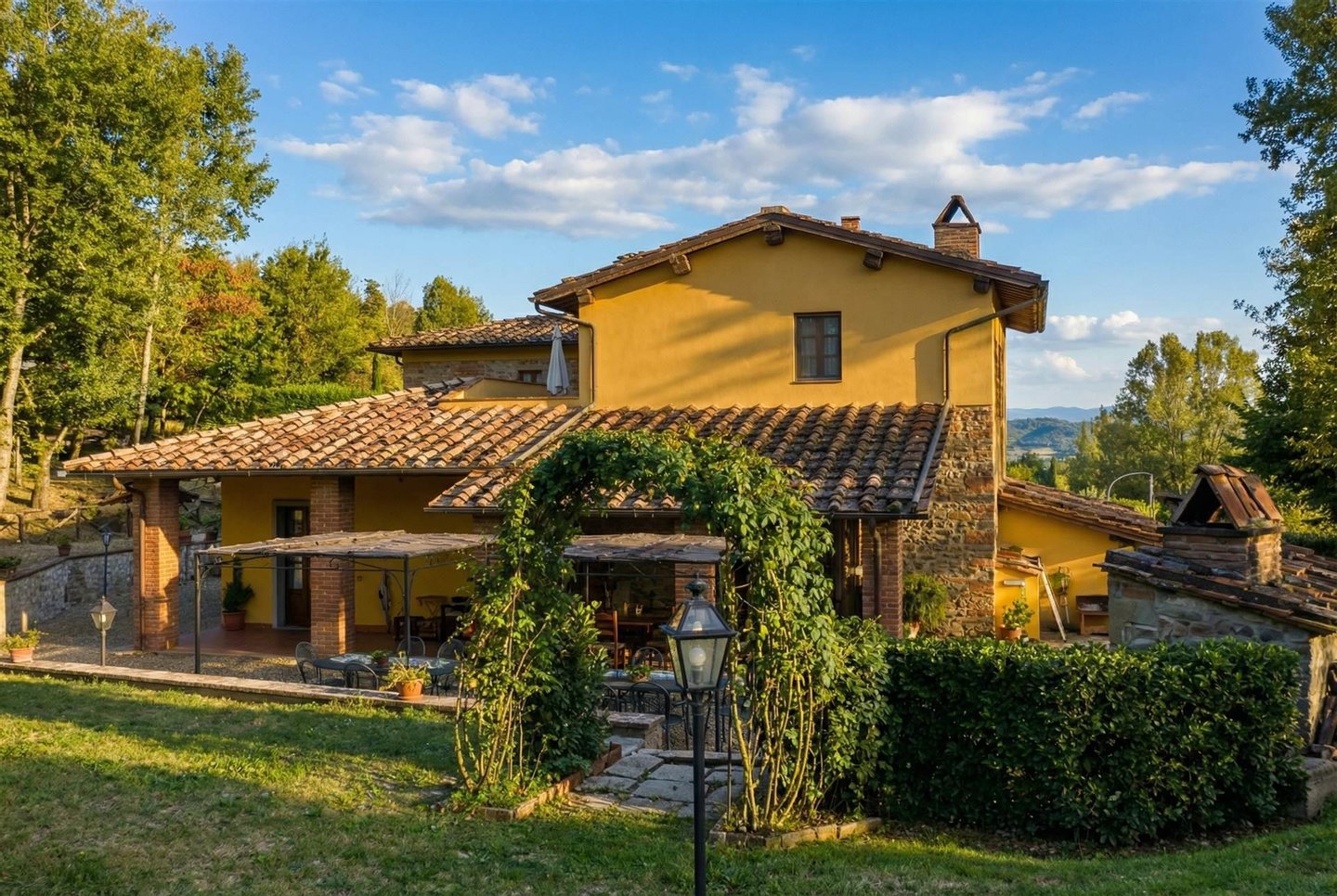 Eingebettet im Herzen der Chianti-Region bieten wir ein außergewöhnliches landwirtschaftliches Anwesen zum Verkauf an, das ländliche Eleganz mit erstklassiger Gastfreundschaft verbindet. Das Herzstück des Anwesens ist das 750 m² große Bauernhaus, das fachmännisch renoviert wurde, um acht unabhängige Wohnungen (insgesamt zehn Schlafzimmer) für Gäste zu beherbergen und einen authentischen, rustikalen Stil zu bieten. Das Anwesen umfasst außerdem eine prestigeträchtige Eigentümerwohnung, die sich über drei Ebenen erstreckt: Das Erdgeschoss verfügt über eine eigene Einheit mit Badezimmer, während die oberen Stockwerke einen großen Empfangssaal, eine Küche, zwei Schlafzimmer und einen charmanten Lesesaal im Panoramaturm beherbergen. Alle Zimmer sind klimatisiert und mit modernen Annehmlichkeiten ausgestattet.