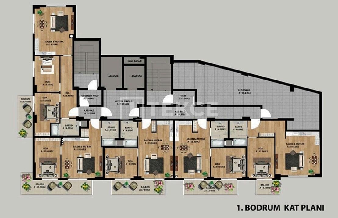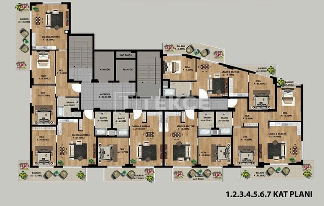 Wohnungen mit Blick auf die Stadt in einem Neubau in Poligon, Izmir & 13 Diese Wohnungen befinden sich im Stadtteil Karabağlar in Izmir. Karabağlar ist ein Entwicklungsgebiet, in dem aktiv Stadterneuerungsprojekte und Massenwohnungsbauprojekte durchgeführt werden. Die meisten Wohnprojekte sind familienorientiert und befinden sich im Zentrum der Küste und der wichtigsten Verkehrswege. Das Gebiet liegt auch in der Nähe der bekannten Einkaufszentren und Gewerbeeinheiten von Izmir, die das ganze Jahr über aktiv sind. & 13 Diese Wohnungen befinden sich in idealer Lage, 50 m von einer Bushaltestelle, 500 m von einer Apotheke, 600 m von Cafés und Restaurants, 1 km von der Küste und Erholungsgebieten, 1,1 km von zweisprachigen Schulen, 1,5 km von einem berühmten Fußballstadion, 2 km von Izmirs bekanntem Einkaufszentrum, 8,5 km von Alsancak und 15 km vom Flughafen Adnan Menderes entfernt. & 13 Das Projekt besteht aus einem 9-stöckigen Gebäude auf einem 1.290 m² großen Grundstück. Es umfasst insgesamt 60 Wohnungen, die für Familien konzipiert sind. Umgeben von städtischen Umgestaltungs- und Massenwohnungsbauprojekten befinden sich diese neu gebauten Wohnungen in einem Gebiet, in dem ein Bevölkerungswachstum erwartet wird. In der Umgebung gibt es viele neue Gebäude, die diesem ähnlich sind. Aus diesem Grund erfüllen die neu errichteten Gebäude hier hohe Qualitätsstandards. & 13 Die Wohnungen zum Verkauf in İzmir sind mit einer offenen Küche, einer Tiefgarage, einem Gebäudeaufzug, einer Stahl-Eingangstür, einer Einbauküche, einer Klimaanlageninfrastruktur, einer Erdgasheizung, hochwertigen Holzparkettböden, hochwertigen Boden- und Wandkeramiken, hochwertigen Markenarmaturen, doppelt verglasten Aluminiumfenstersystemen und hochwertigen Markenküchenschränken ausgestattet.& 13 ADB-00207
