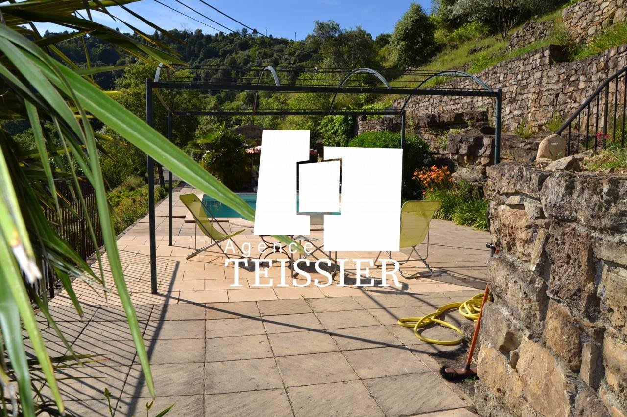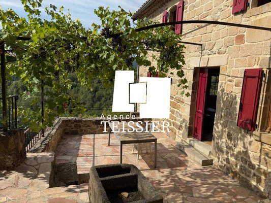 Süd-Ardeche : 07140 Les Vans Charakterhaus mit dominanter Aussicht. An einem ruhigen Südhangen, weniger als 10 Minuten von Les Vans entfernt, wurde diese teilweise aus dem 17. Jahrhundert stammende Immobilie geschmackvoll vollständig restauriert. Sie besteht aus einem Hauptteil von etwa 150 m², einer Ferienwohnung (zwei Schlafzimmer, Wohnzimmer, Küche) und einem Nebengebäude (zwei Schlafzimmer, Duschbad/WC). Ungefähr 2,8 Hektar Land mit einer Olivenplantage (Produktion von etwa 180 kg), zwei Quellen, Pool, ideal als Familienhaus. 'Maklergebühren trägt der Verkäufer'