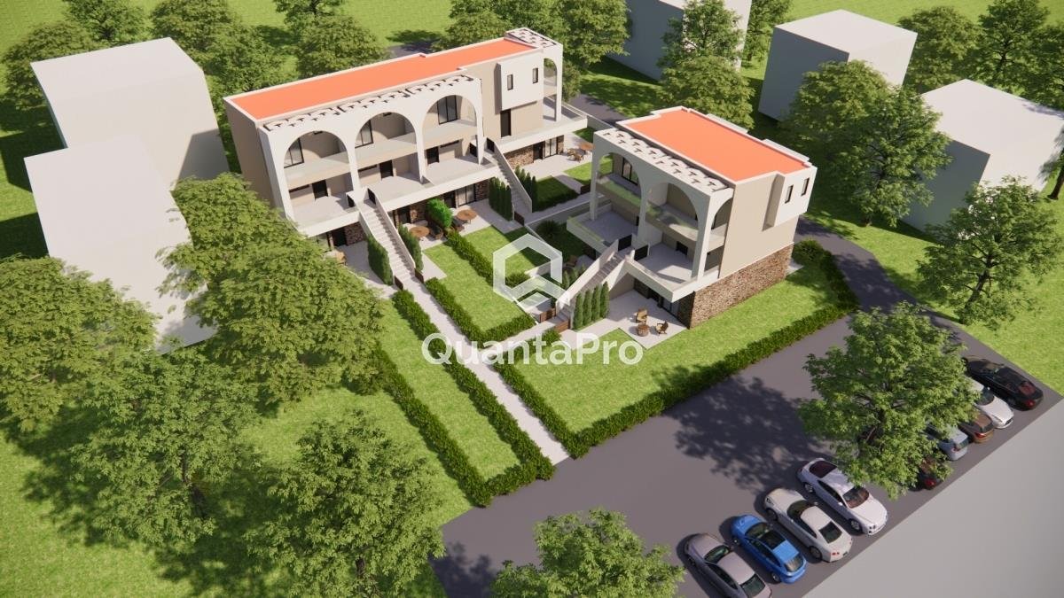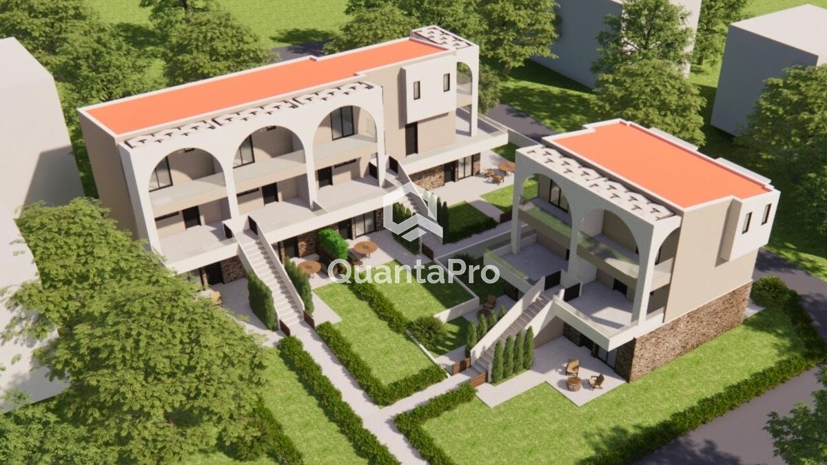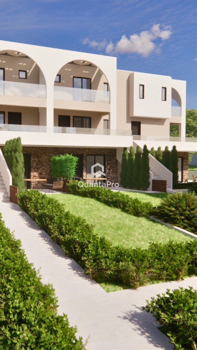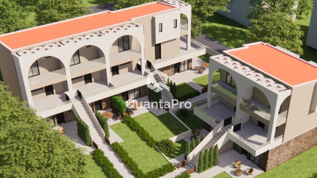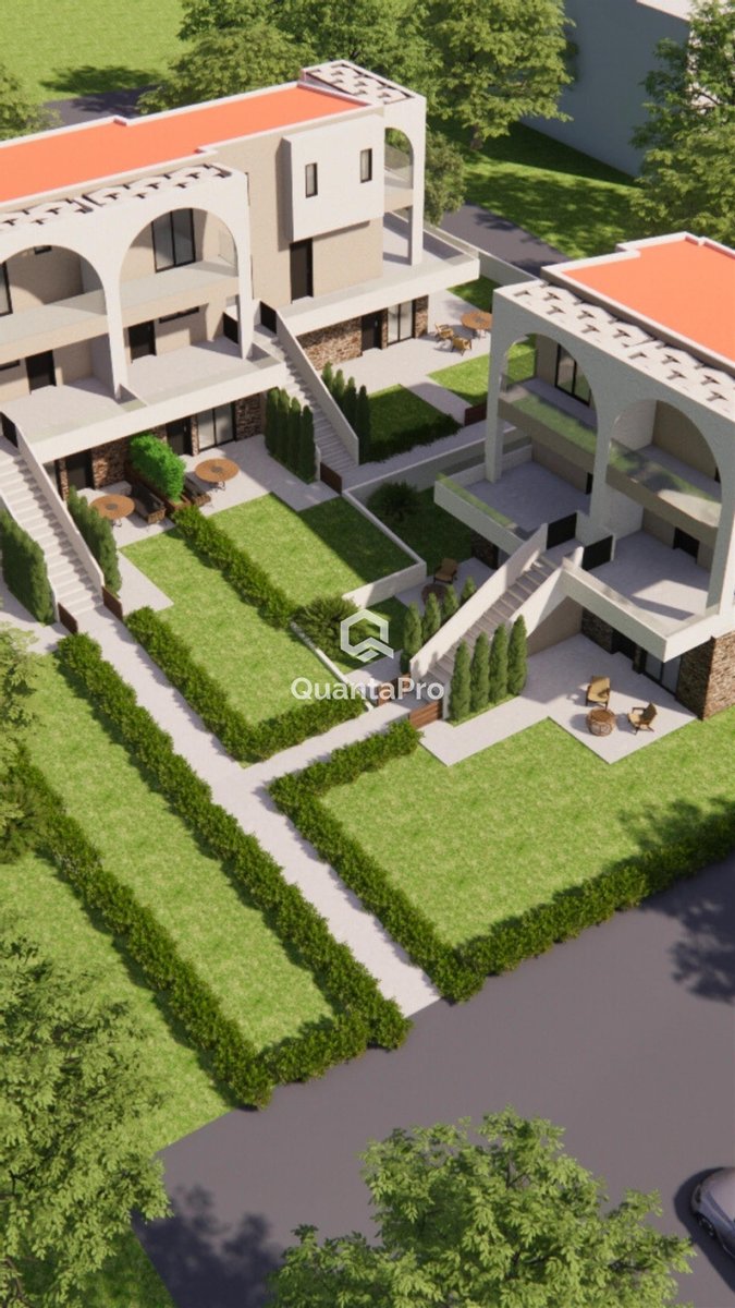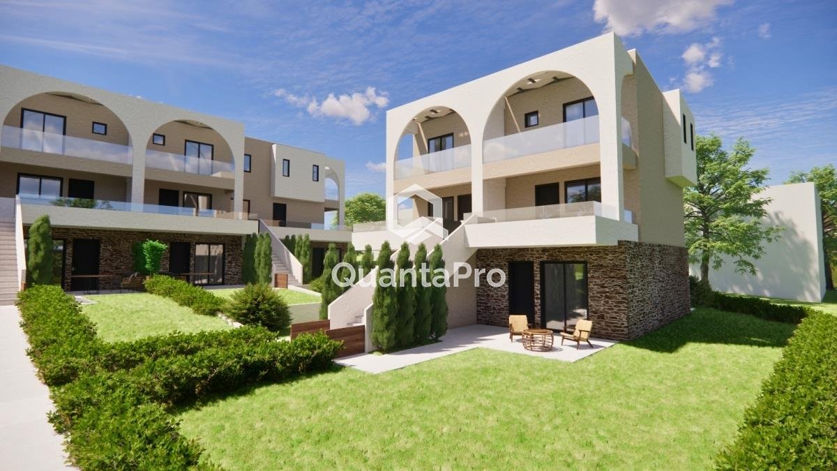 Der Komplex besteht insgesamt aus 10 Häusern, von denen 5 Wohnungen im Erdgeschoss und 5 Maisonetten sind. Parkplatz für jedes Haus