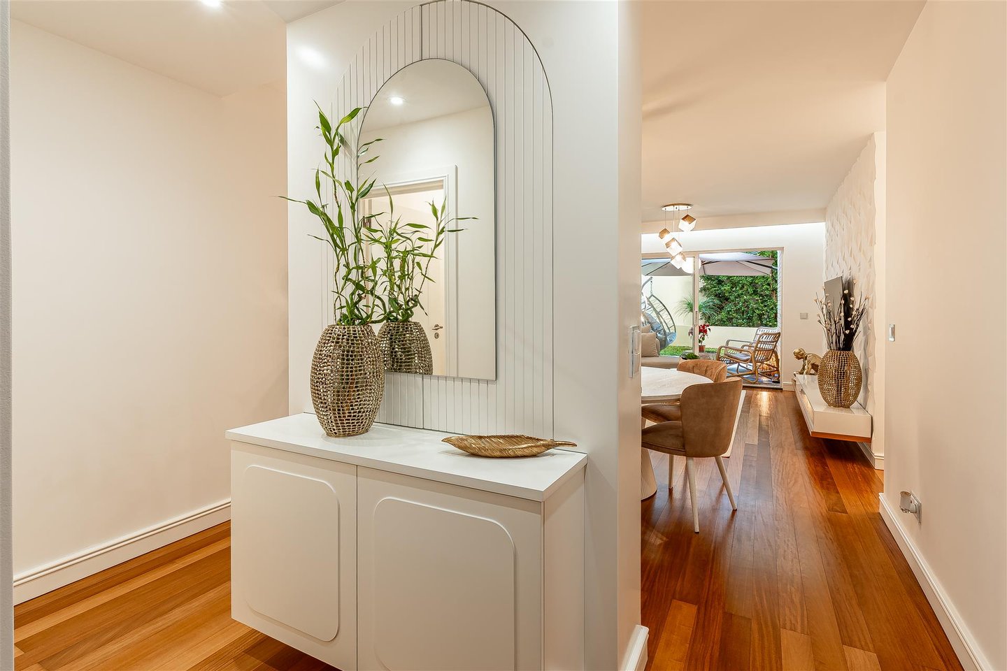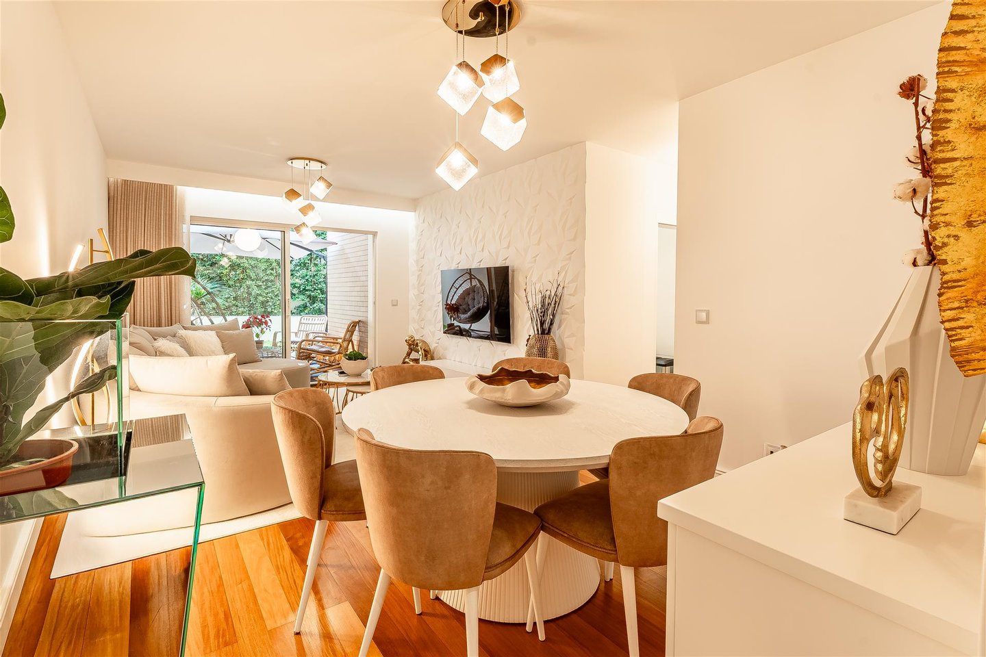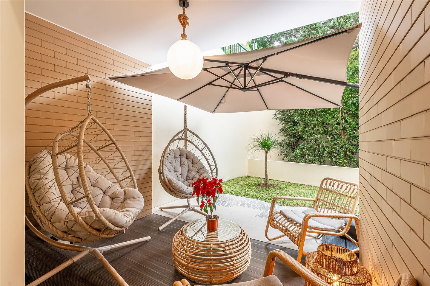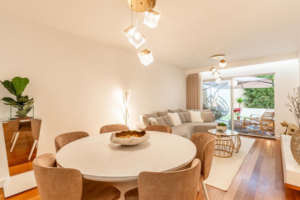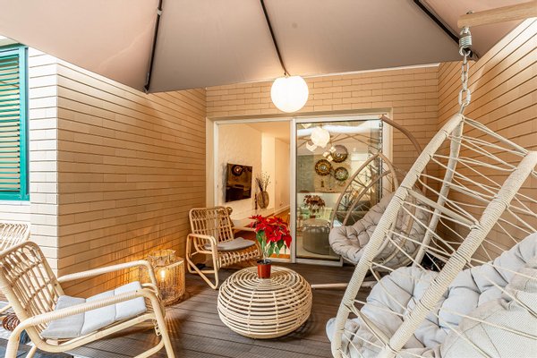 Wir präsentieren diese elegante Einzimmerwohnung mit 100 m² Fläche im Erdgeschoss, die durch ihre angenehme private Terrasse hervorsticht, die sich in einen echten Freizeitbereich verwandelt hat, ideal für Momente der Ruhe, Geselligkeit oder das Essen im Freien.