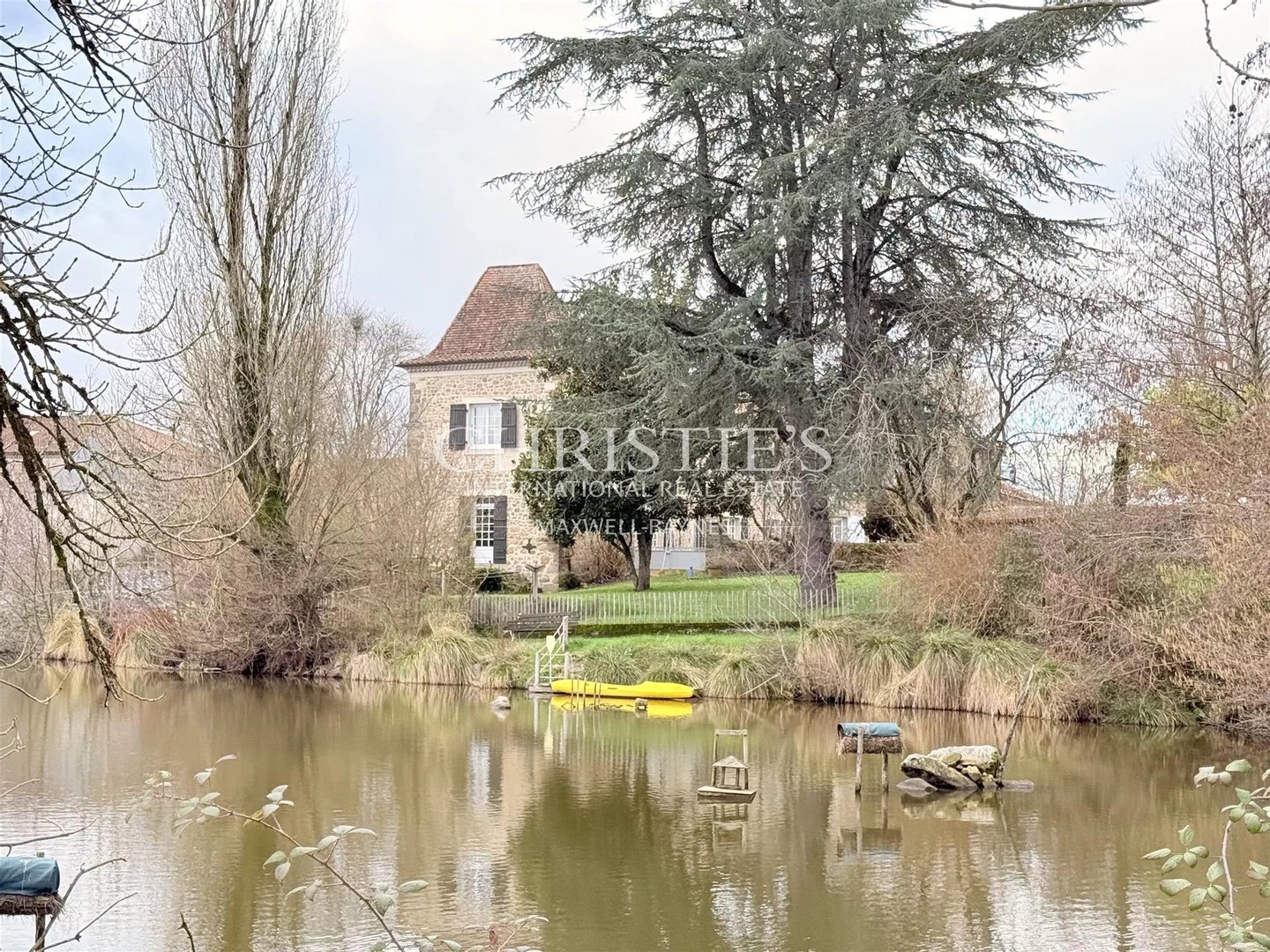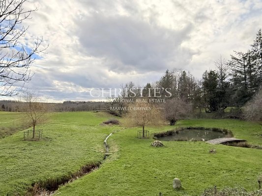 Am Rand eines etwa einen Hektar großen Teichs gelegen, der von drei natürlichen Quellen gespeist wird, scheint das Haus mit Wasser und Landschaft in Dialog zu treten. Das hydraulische System ist bemerkenswert: Der Teich wird von einem oberen Gewässer über einen Bach gespeist und fließt dann sanft in einen unteren Teich, was eine lebendige, beruhigende und tief poetische Atmosphäre schafft.