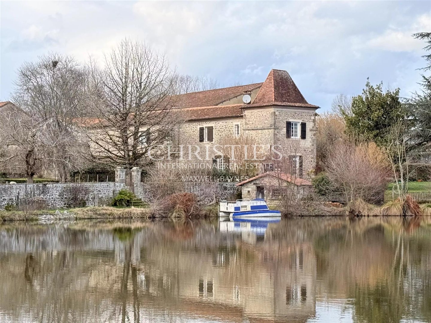 Zwei Angelpontons durchziehen die Ufer und laden zu langen Stunden des Nachdenkens ein. In unmittelbarer Nähe des Wassers liegt ein authentisches Strohdachhaus mit Lehmboden und einem prächtigen alten Steinkamin – ein zeitloser Ort, ideal als Angelhütte oder charmante Zufluchtsort.