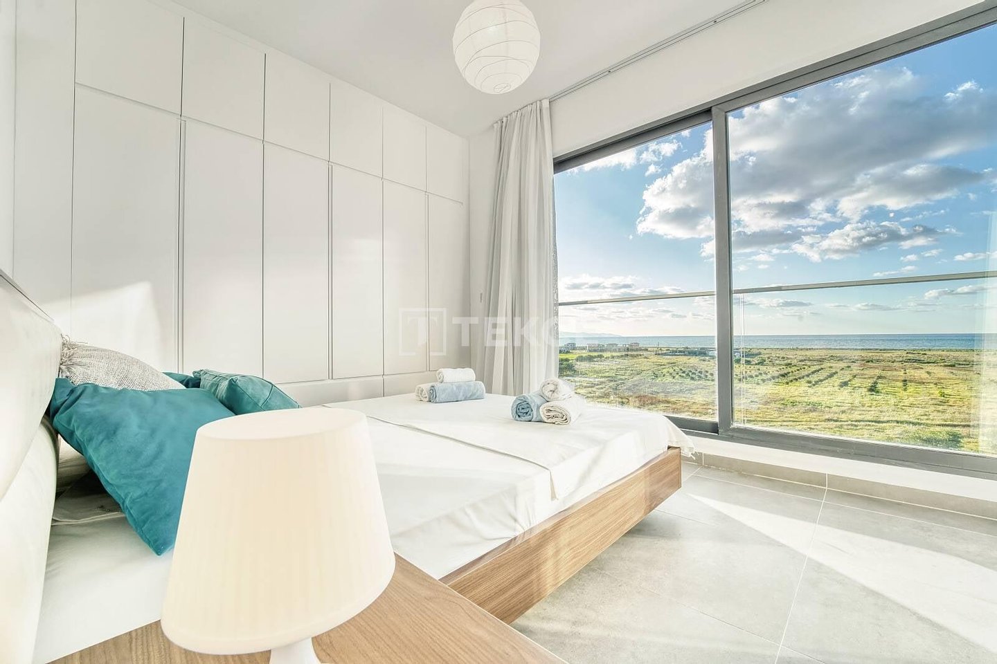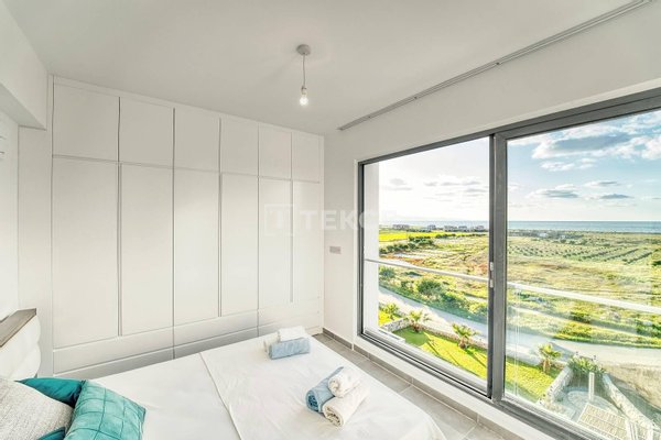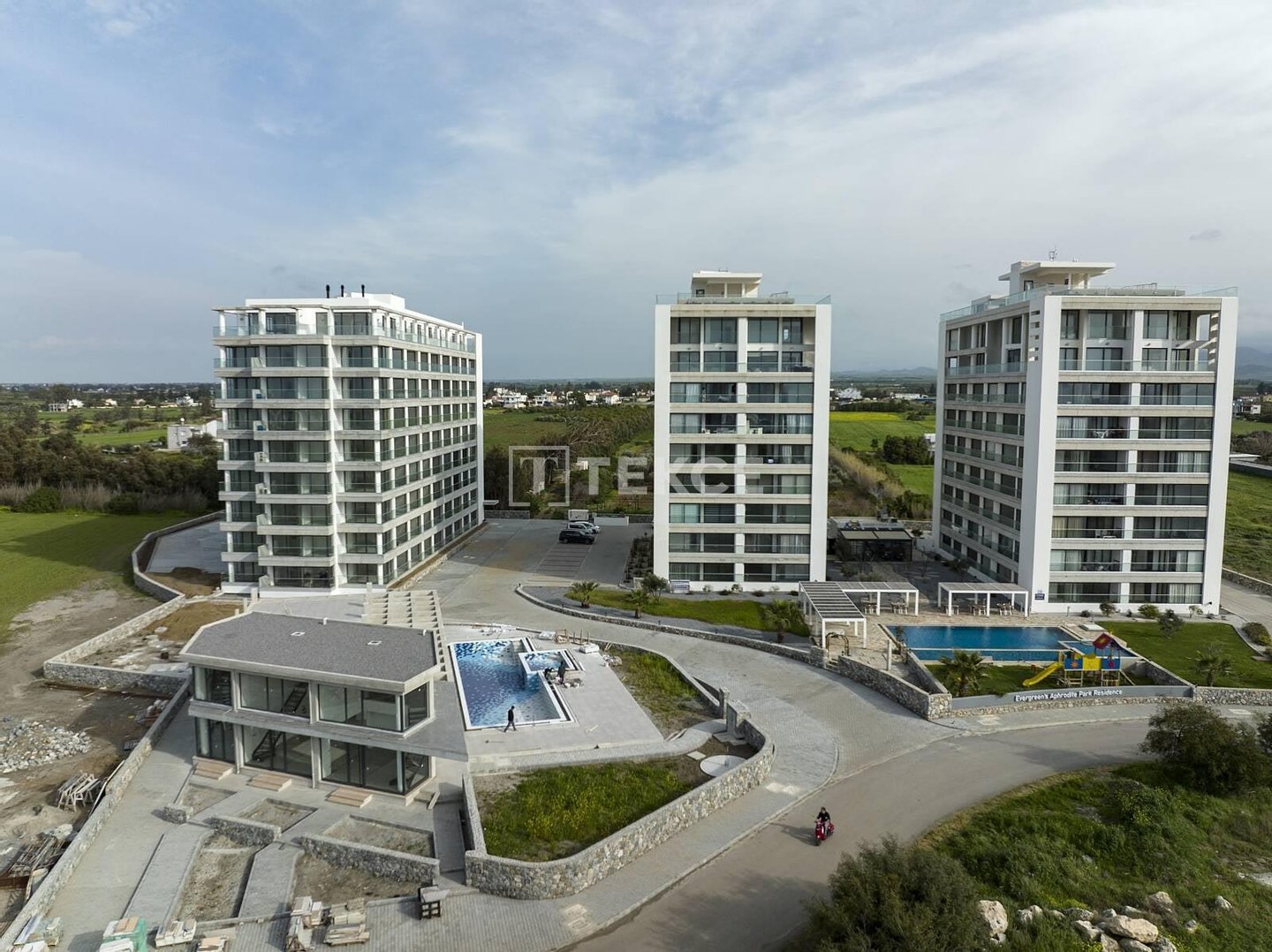Stilvolle Wohnungen in einem Komplex in Meeresnähe in Nordzypern Gaziveren & 13 Die Meerblick-Wohnung befindet sich in der schönen mediterranen Stadt Gaziveren, die zu Lefke, Nordzypern, gehört. Die Region ist bekannt für seine seltene ruhige Atmosphäre in der Nähe des Stadtzentrums als auch. Darüber hinaus befinden sich verschiedene internationale Universitäten innerhalb der Grenzen. Dieses sich schnell entwickelnde Gebiet bietet ein urlaubsähnliches Leben mit schönen Stränden und ist nah an den anderen Teilen der Insel. & 13 Die Wohnungen in Nordzypern sind 300 m vom Strand entfernt, 6 km vom Cmc Golf Club, 6 km vom Cengiz Topel Krankenhaus, 8 km vom Güzelyurt Bazaar, 8 km von der Cyprus Community Health Sciences University, 11 km von der European University of Lefke, 16 km von der Metu, 52 km von der Hauptstadt Lefkoşa, 59 km von Girne, 59 km vom Troodos Ski Resort, 65 km vom Ercan Flughafen, 94 km vom Larnaca International Airport und 115 km vom Paphos International Airport. & 13 Die Wohnung befindet sich in einem Projekt, das aus drei Blöcken und 64 Wohnungen auf einem 9189 qm großen Grundstück besteht. Die Wohnungen sind in verschiedenen Typen erhältlich, darunter Wohnungen mit einem und zwei Schlafzimmern im mittleren Stockwerk, Penthouse-Duplex-Wohnung und 1-Schlafzimmer-Penthouse-Wohnungen. & 13 Das Projekt verfügt über einen Pool und eine Bar im Gemeinschaftsgarten sowie über private Schwimmbäder auf den Terrassen und einen Parkplatz für jede Immobilie. Darüber hinaus bietet der Komplex zahlreiche soziale Einrichtungen wie ein Schönheitszentrum, Spa- und Massageservice, Sauna, einen voll ausgestatteten Fitnessraum mit Meerblick, Yogastudios, Kinderspielplätze, einen Minigolfplatz, sorgfältig angelegte Gärten, ein Restaurant und eine Strandbar, einen Wassersportclub und eine Kitesurfing-Schule. Außerdem gibt es eine Hausverwaltung und einen Vermietungsservice. & 13 Die stilvoll gestalteten Wohnungen verfügen über ein Wohnzimmer, ein Schlafzimmer, eine Duschkabine, einen Einbauschrank, eine Gegensprechanlage, TV-Infrastruktur und Internet-Infrastruktur.& 13 ECN-00071