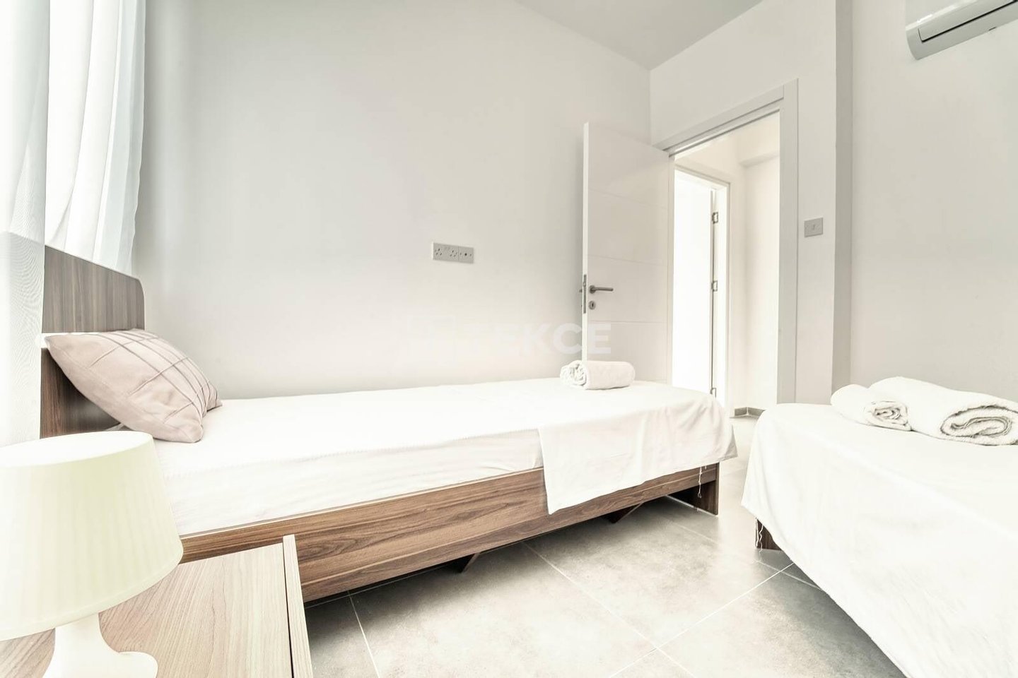 Stilvolle Wohnungen in einem Komplex in Meeresnähe in Nordzypern Gaziveren & 13 Die Meerblick-Wohnung befindet sich in der schönen mediterranen Stadt Gaziveren, die zu Lefke, Nordzypern, gehört. Die Region ist bekannt für seine seltene ruhige