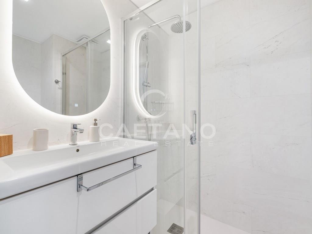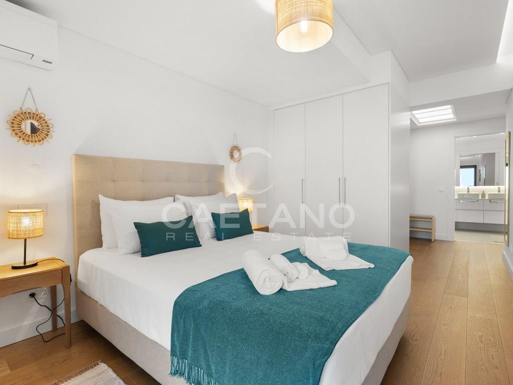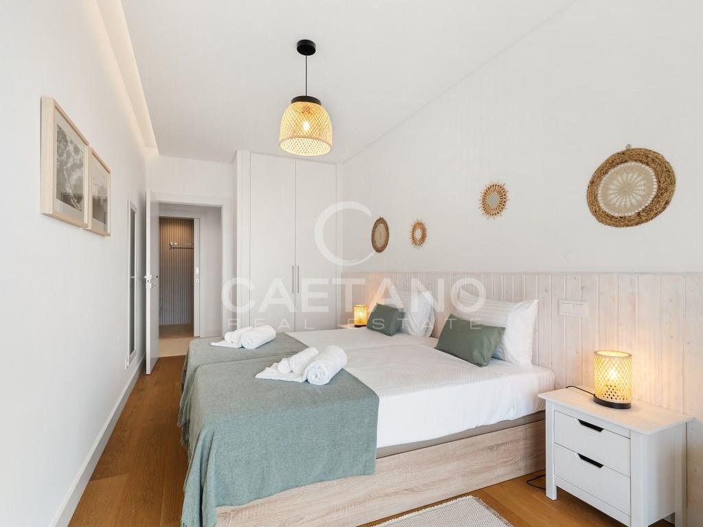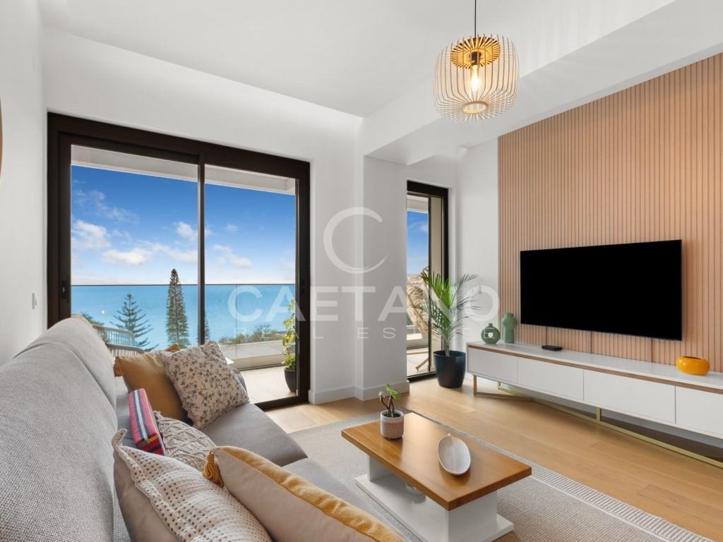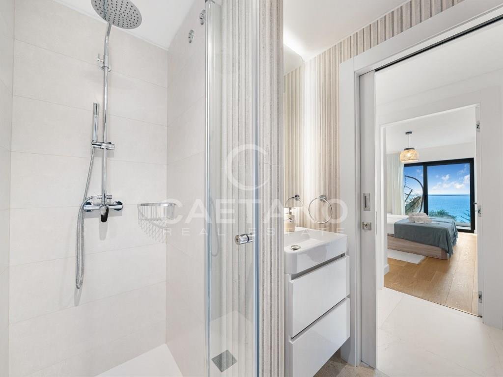Eine elegante Dreizimmerresidenz mit Panoramablick auf das Meer, privatem Strandzugang und unvergleichlichen Annehmlichkeiten in Praia Formosa.