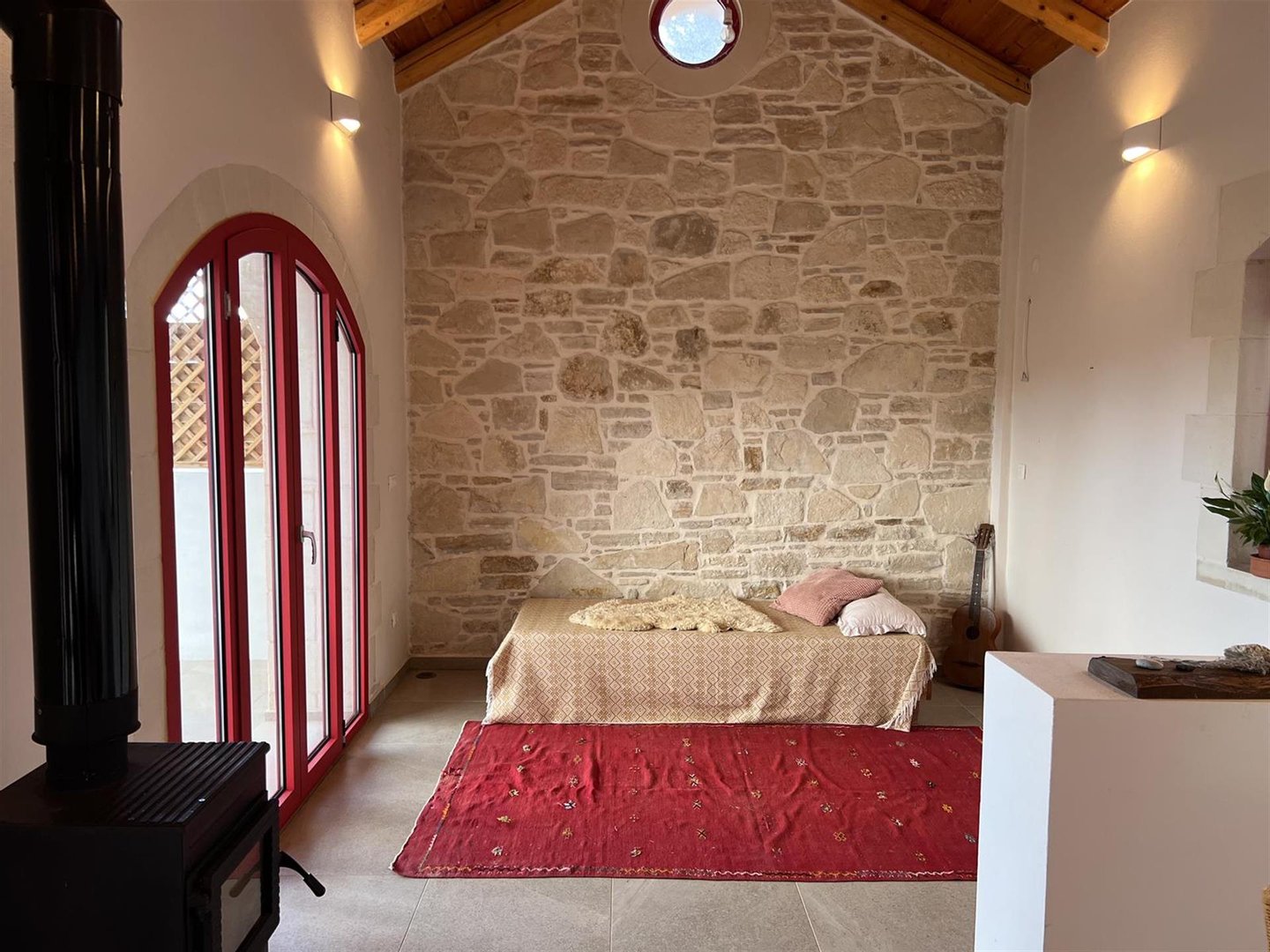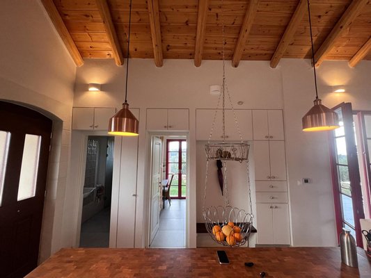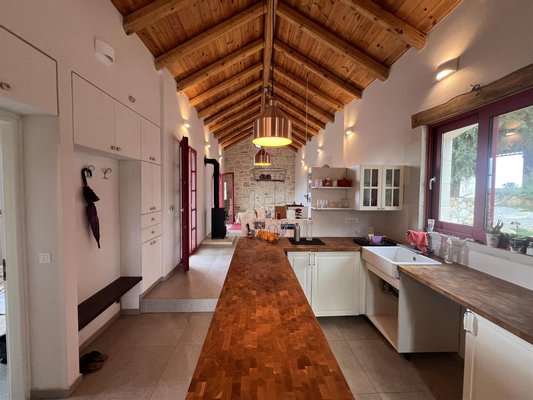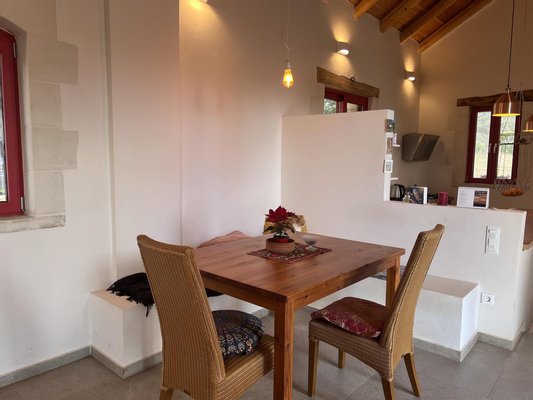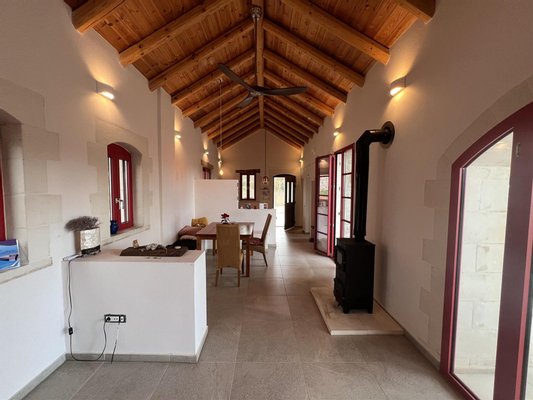 Das Anwesen spiegelt den zeitlosen Charakter der kretischen Architektur wider, in dem Naturstein und warme Holzelemente harmonisch mit modernen Annehmlichkeiten harmonisch harmonieren und eine Residenz von zurückhaltender Eleganz und Authentizität schaffen.