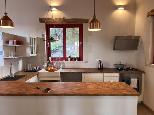 Helle, offene Küche, Ess- und Wohnzimmer mit großzügigen Proportionen