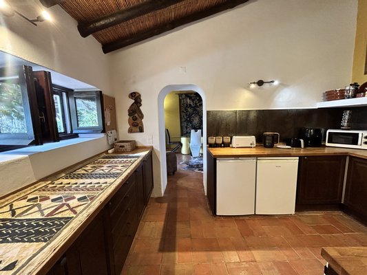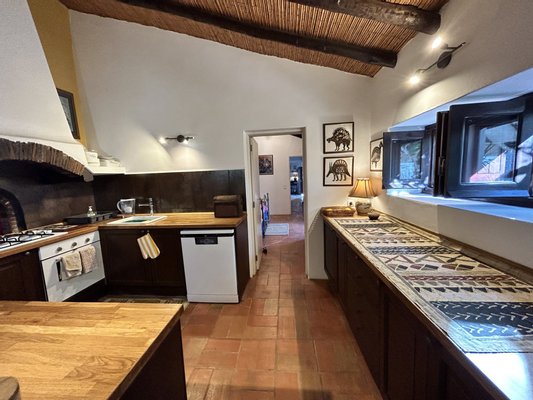 Sorgfältig renoviert, verbindet dieses 148 m² große Anwesen modernen Komfort mit traditionellem Charme. Das Haupthaus auf einer Ebene bietet ein helles Wohnzimmer mit Kamin, eine wunderschön ausgestattete Küche sowie zwei einladende Schlafzimmer. Das Badezimmer ist elegant für Ihren Komfort gestaltet.