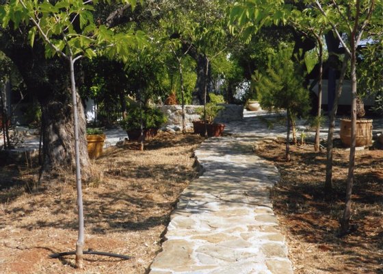Die Villa befindet sich auf einem üppigen, angelegten Grundstück von 4.362 m², bepflanzt mit Oliven-, Orangen-, Zitronen- und Maulbeerbäumen sowie Kiefern, und profitiert von einem eigenen Wasserbohrloch. Im gesamten Grundstück schaffen steingepflasterte Innenhöfe, traditionelle Steinbrunnen, ein Baumhaus und sorgfältig gestaltete Außenbereiche eine seltene Atmosphäre der Harmonie mit der Natur.