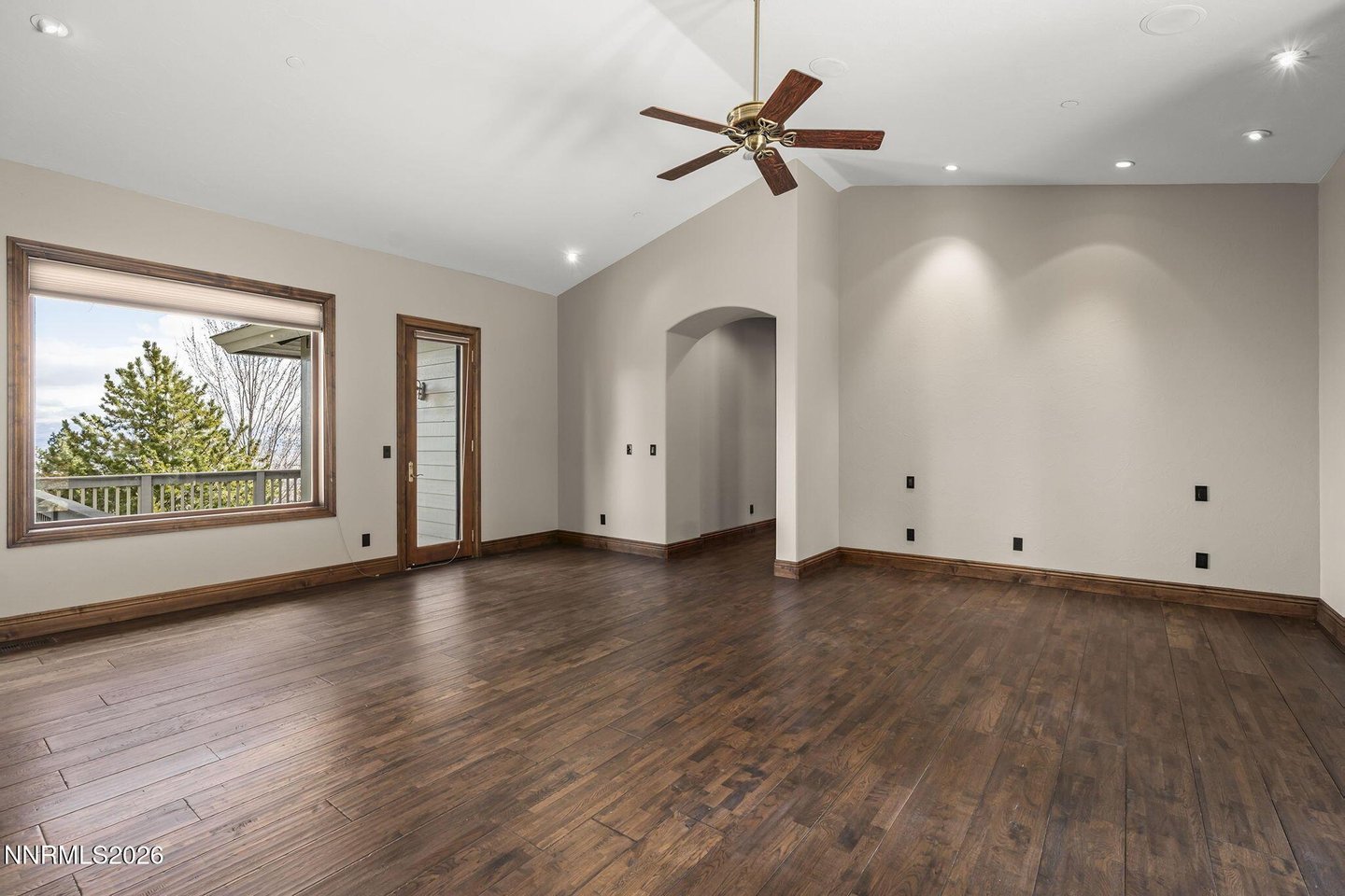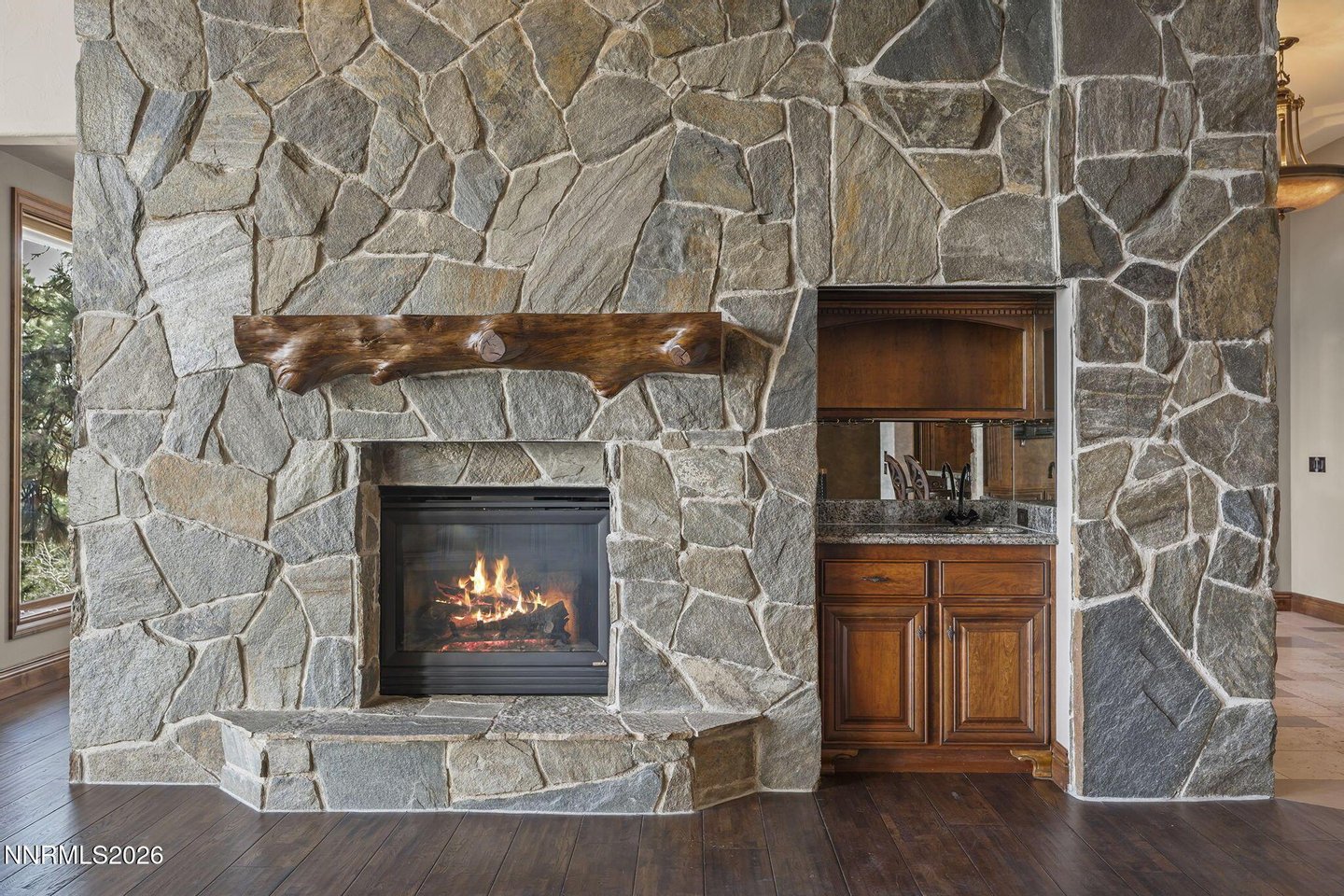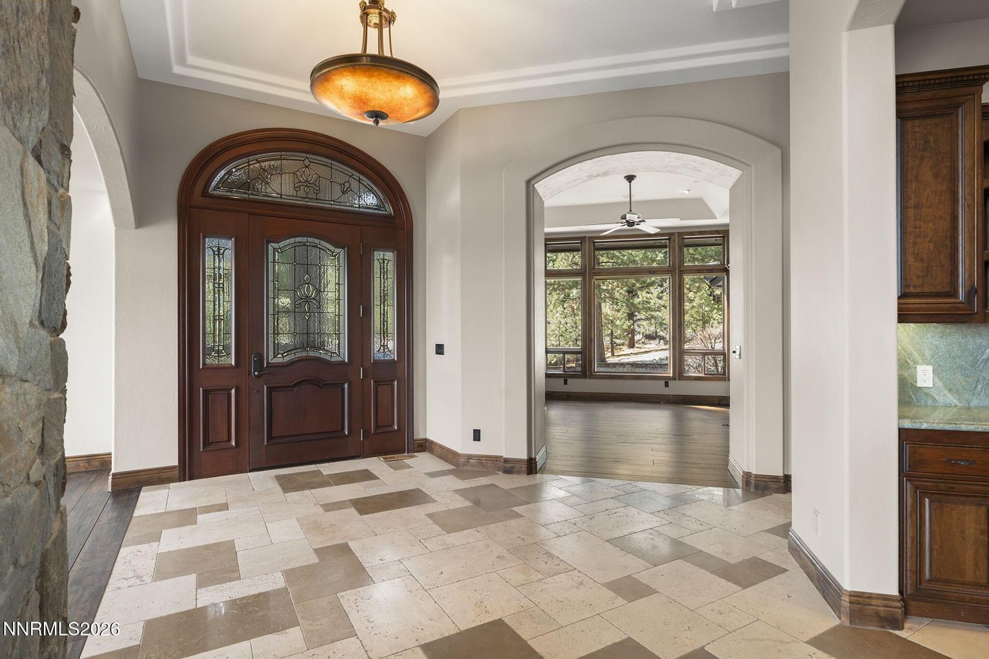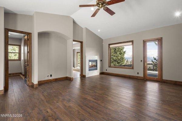 Welcome to 220 Sheridan Creek Court, an exceptional mountain estate located within the exclusive gated community of Jobs Peak Ranch. Set on a panoramic 2.5-acre homesite surrounded by mature trees, this custom residence offers sweeping valley views and dramatic Jobs Peak scenery, creating a setting defined by peace, privacy, and natural beauty. With over 5,300 square feet of thoughtfully designed living space, the home delivers a rare balance of refined luxury and serene mountain living. From the moment you arrive, the property evokes a sense of retreat. The forested surroundings, quiet atmosphere, and expansive views establish a lifestyle centered on tranquility and connection to nature. EZ-care landscaping with a drip irrigation system enhances the experience, allowing the grounds to remain beautiful with minimal maintenance. A striking heavy-beam entry finished in rock and stucco introduces a residence crafted with intention and quality. Inside, the spacious layout features five bedrooms, three and one-half bathrooms, and a dedicated library or office, offering flexibility for full-time living, remote work, or hosting guests. The chef's kitchen is designed for both everyday enjoyment and entertaining, with upgraded appliances, Iranian granite countertops, rich cherry cabinetry, tile and wood flooring, a comfortable stool counter, and a center island with a custom pot rack. The living and dining rooms are generous and inviting, each featuring gas fireplaces that enhance the warm mountain ambiance. The library or office provides a quiet retreat with a wood-burning fireplace. A living room surround sound system, built-in whole-house audio, and optional video camera monitoring add modern comfort throughout. An elevated viewing deck extends the living space outdoors, offering expansive valley and mountain vistas. The primary suite is a private sanctuary, featuring a sitting area, a double-sided gas fireplace, and two walk-in closets, creating a calming and luxurious retreat. The finished lower level offers exceptional versatility and can easily serve as secondary living space, in-law quarters, or next-generation accommodations. This level includes a private bedroom, a full bathroom with tub and shower, a large bonus or recreation area, tiled floors, and patio access with views. A pool table is available, making the space ideal for guests or extended family seeking privacy and independence. Additional features include a heated five- to six-car garage with sound system, large workshop, and workbench, along with a rear patio equipped with a gas BBQ hookupperfect for relaxed outdoor gatherings. 220 Sheridan Creek Court offers an elevated mountain lifestyle rooted in serenity, space, and privacy, while remaining within convenient reach of Lake Tahoe, Heavenly, and premier outdoor recreation. This is a rare opportunity to own a luxury retreat immersed in nature within one of the area's most desirable gated communities.