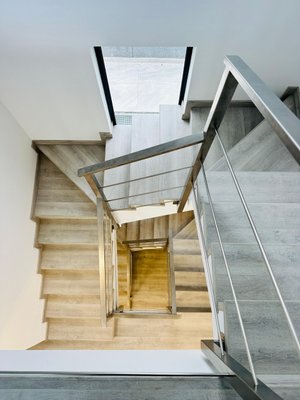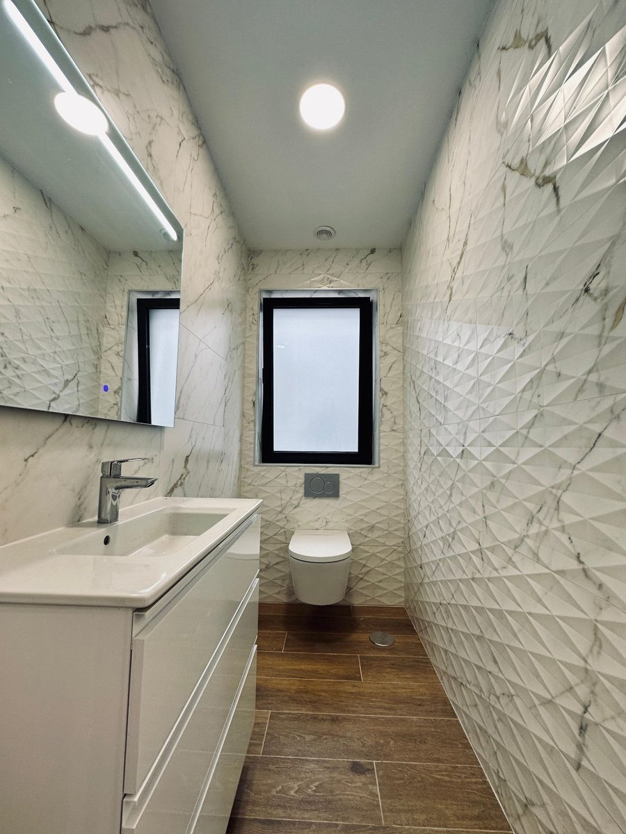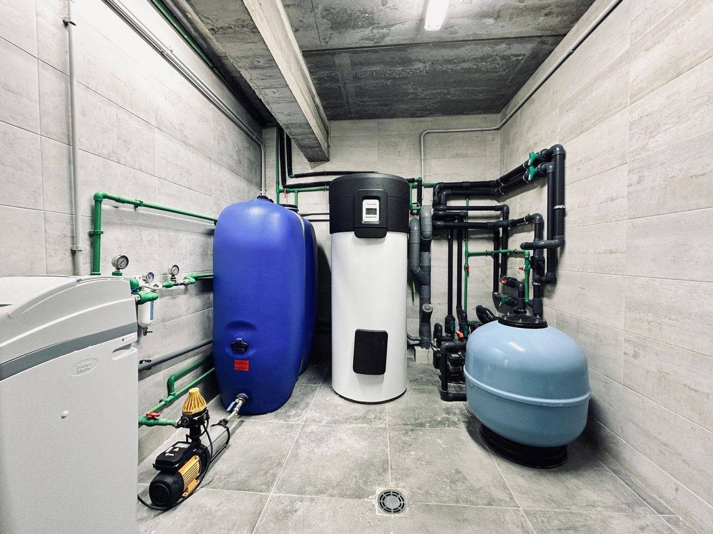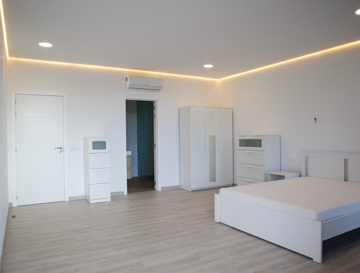 Auf dieser Etage finden wir zwei geräumige Schlafzimmer, beide mit eigenen Badezimmern, großen Fenstern, die reichlich Tageslicht und Klimaanlage in jedem Zimmer bieten. Außerdem gibt es eine Garage mit Platz für 4–5 Fahrzeuge, einen Waschraum und einen Pool für Poolmaschinen.