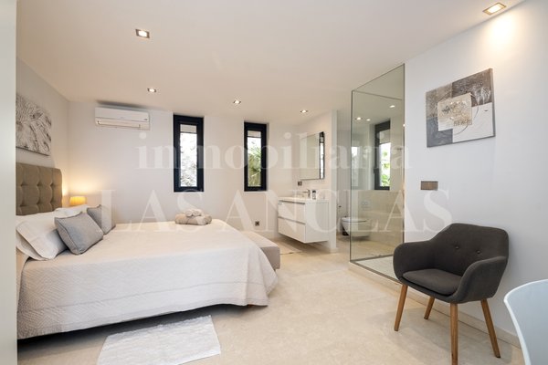 Hervorzuheben sind die hohe Bauqualität und die Ausstattung der Villa: Fußbodenheizung, Klimaanlage, die durch ein aerothermisches System reguliert wird, Solarkollektoren zur Reduzierung des Stromverbrauchs, Sonos-Soundsystem, elektrische Jalousien, Hausautomation, dimmbare Beleuchtung, Sicherheitsglas, Kalksteinböden innen und außen sind nur einige davon.