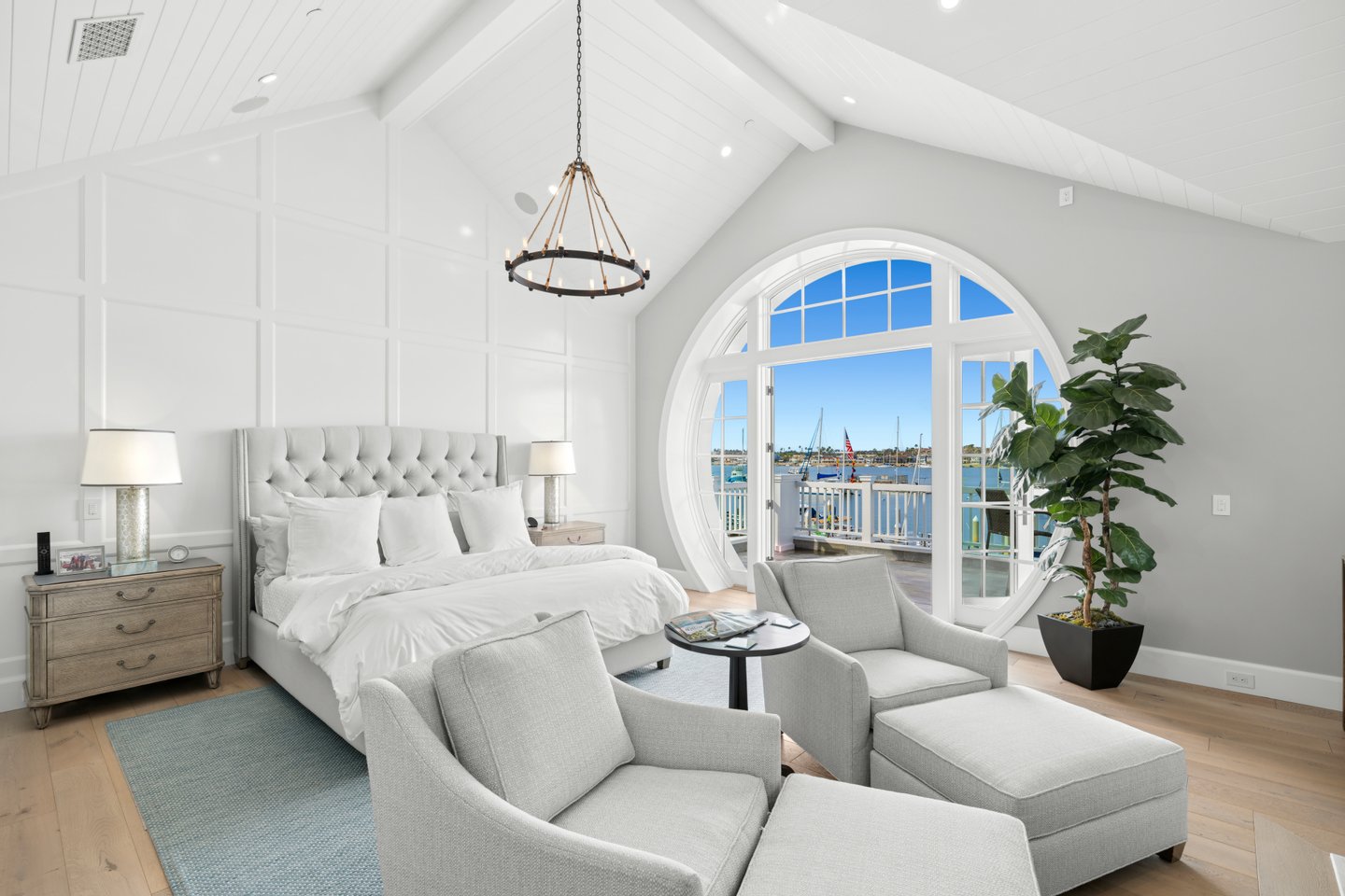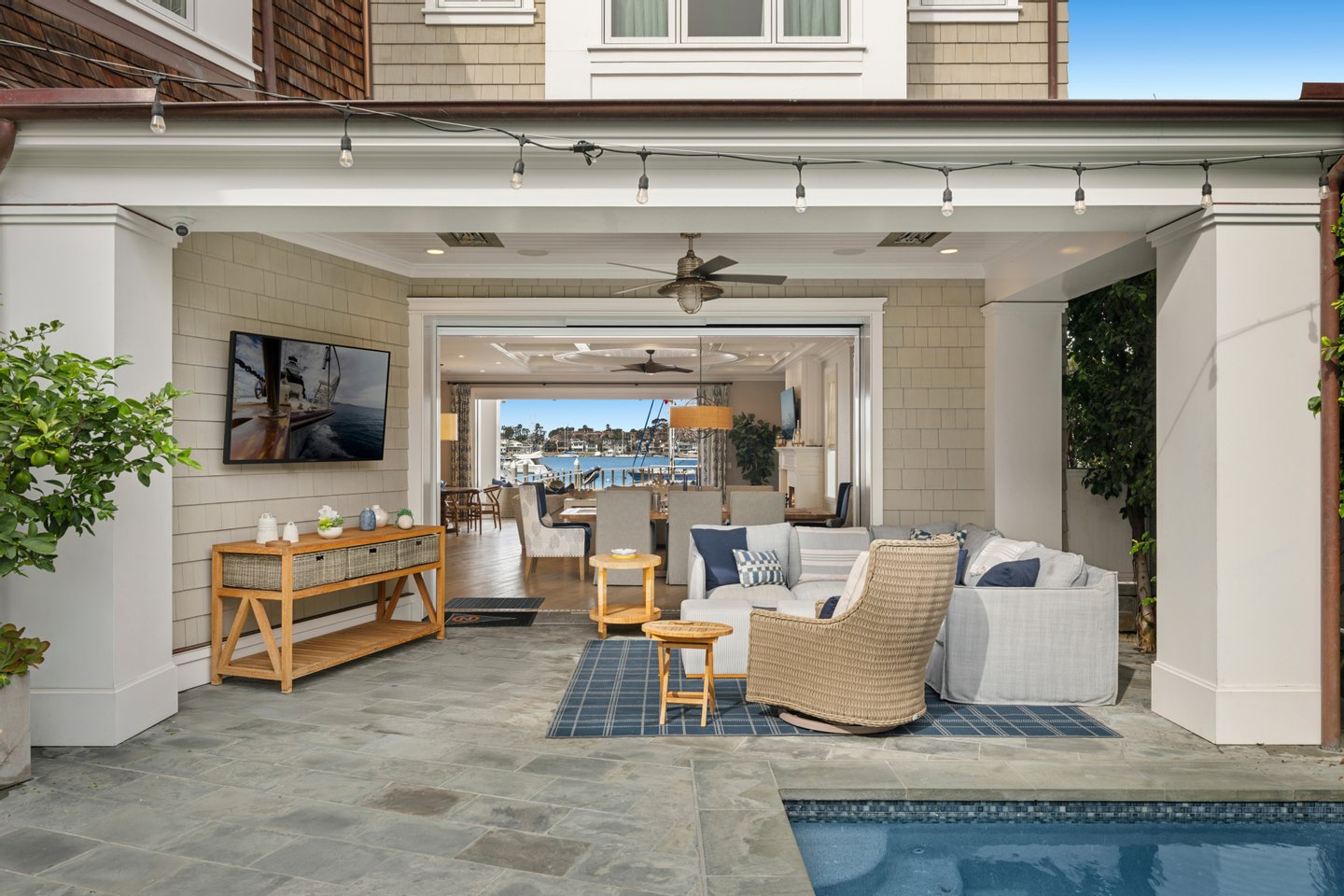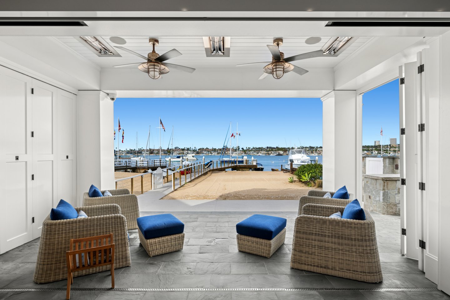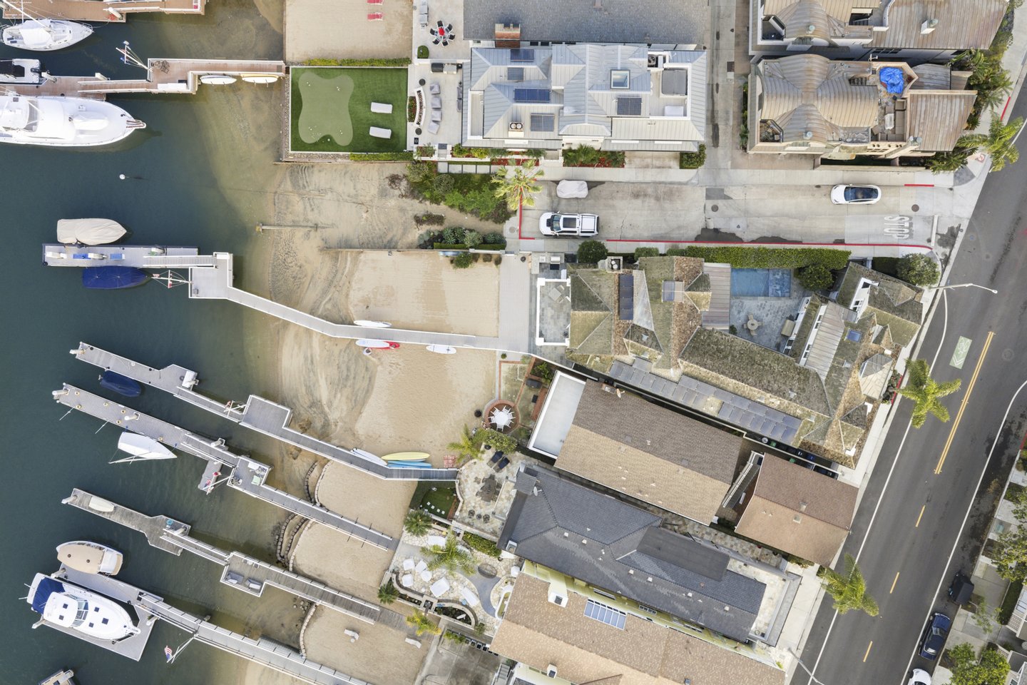 Aus fast jedem Raum dieses idyllischen Küstenhauses sind wunderschöne Panoramablicke aus Saphirfarben zu sehen. Maßgeschneidert von Brandon Architects und 2017 vom führenden Hausbauer Spinnaker Development fertiggestellt, verfügt diese makellose Immobilie über einen großzügigen, offenen Grundriss, klare Linien und moderne Annehmlichkeiten. Die Luxusresidenz verfügt über eine beruhigende, neutrale Farbpalette und individuelle Ausstattungen, darunter: ein begehbarer Weinraum mit Glaswänden; maßgefertigte Schränke; Kassettendecken; ein geräumiger Waschraum mit eingebautem Hundebad; und wunderschöne Stein-, Marmor- und Fliesenarbeiten. Die prunkvolle Hauptsuite mit Balkon liegt markant und hebt einen weiten Blick auf die Bucht und den friedlichen Morgenaufgang. Drei zusätzliche übergroße Schlafzimmersuiten, Büros und eine angebaute Garage für vier Autos bieten geräumige Unterkünfte für den Alltag, während ein Innenhof mit privatem Pool, Spa und Wasseranlage, ein angrenzender Billard- oder Bonusraum mit Minibar, eine Kochküche und ein Wohnzimmer mit Blick auf eine Loggia im Sand die ideale Kulisse zum Entspannen mit Familie und Freunden bieten. Verschwindende Türen öffnen das gesamte Erdgeschoss des Hauses zum Innenhof und zum Strand. Dieses außergewöhnliche, vom Cape Code inspirierte Haus steht auf einem der größten Grundstücke am Bucht am Peninsula Point mit 7.424 Quadratfuß, einem Eckgrundstück, das etwa dreimal so groß ist wie das übliche Grundstück an der Bucht, und hat nur einen Nachbarn im Westen. Der weitläufige private Strand und der Steg liegen an der größten Breite der Newport Bay und bieten erstklassige Ausblicke auf die Sommer-Yachtclub-Rennen durch den Hafen und die jährliche Feiertagsbootsparade sowie reichlich Platz, um die Zehen in den Sand zu versenken, sich mit einem schnellen Bad in der Bucht abzukühlen und ein Paddleboard herauszuholen. Oder segelt den Tag davon. Der Steg ist für ein bis zu 55 Fuß langes Boot zugelassen. Dies ist eine großartige Gelegenheit, das Beste am Bayfront-Leben und den begehrten Newport Beach-Lebensstil in unmittelbarer Nähe zum Balboa Village, Luxusgeschäfte, gehobene Restaurants und erstklassige Strände zu genießen.