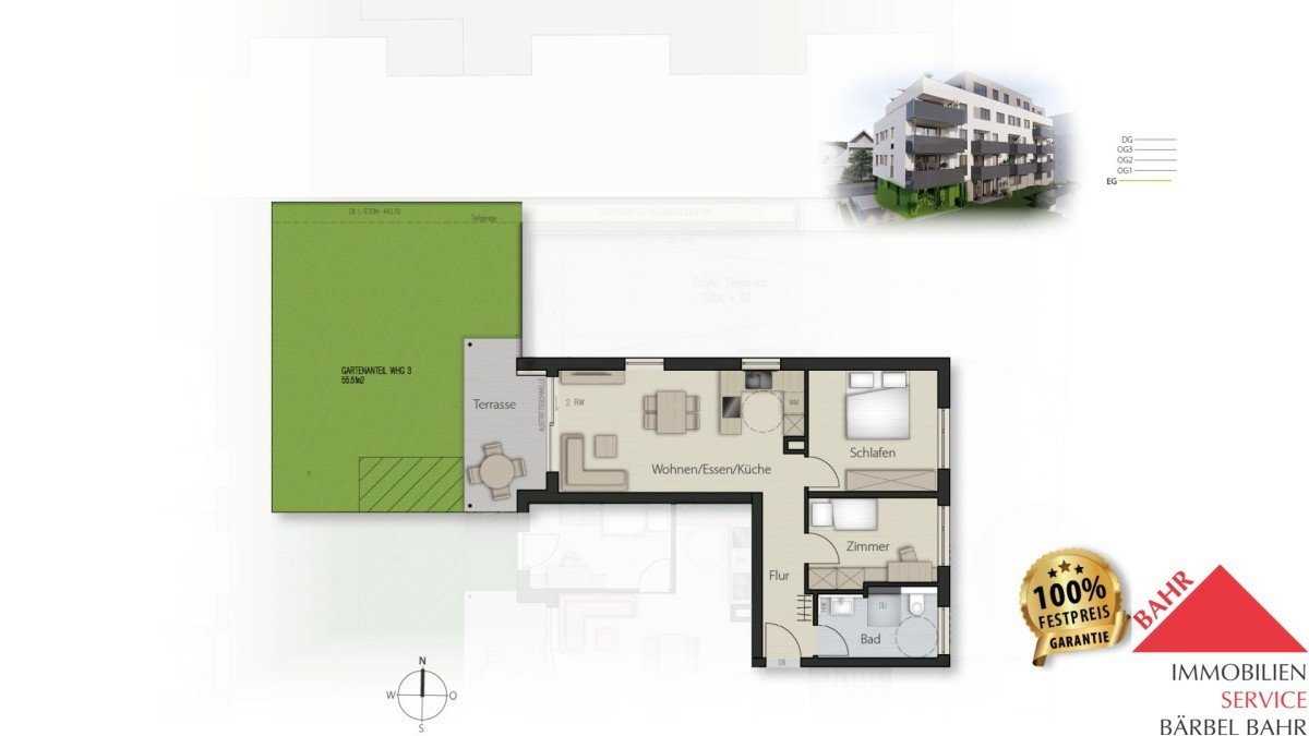 - Terrasse mit Gartenanteil (ca. 56 m²)