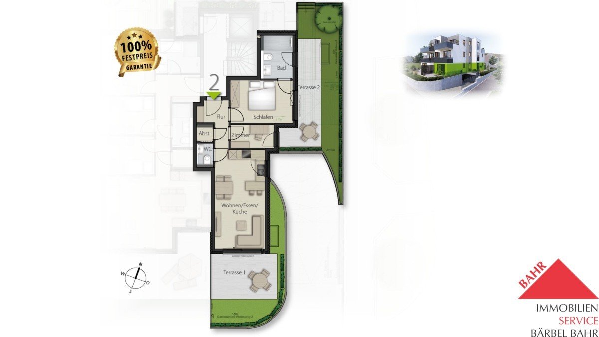 Für Kapitalanleger bedeutet dies: eine gefragte Wohnform mit starker Vermietbarkeit – flexible Raumaufteilung, Erdgeschossqualität und zwei Terrassen als klarer Mehrwert am Markt.
