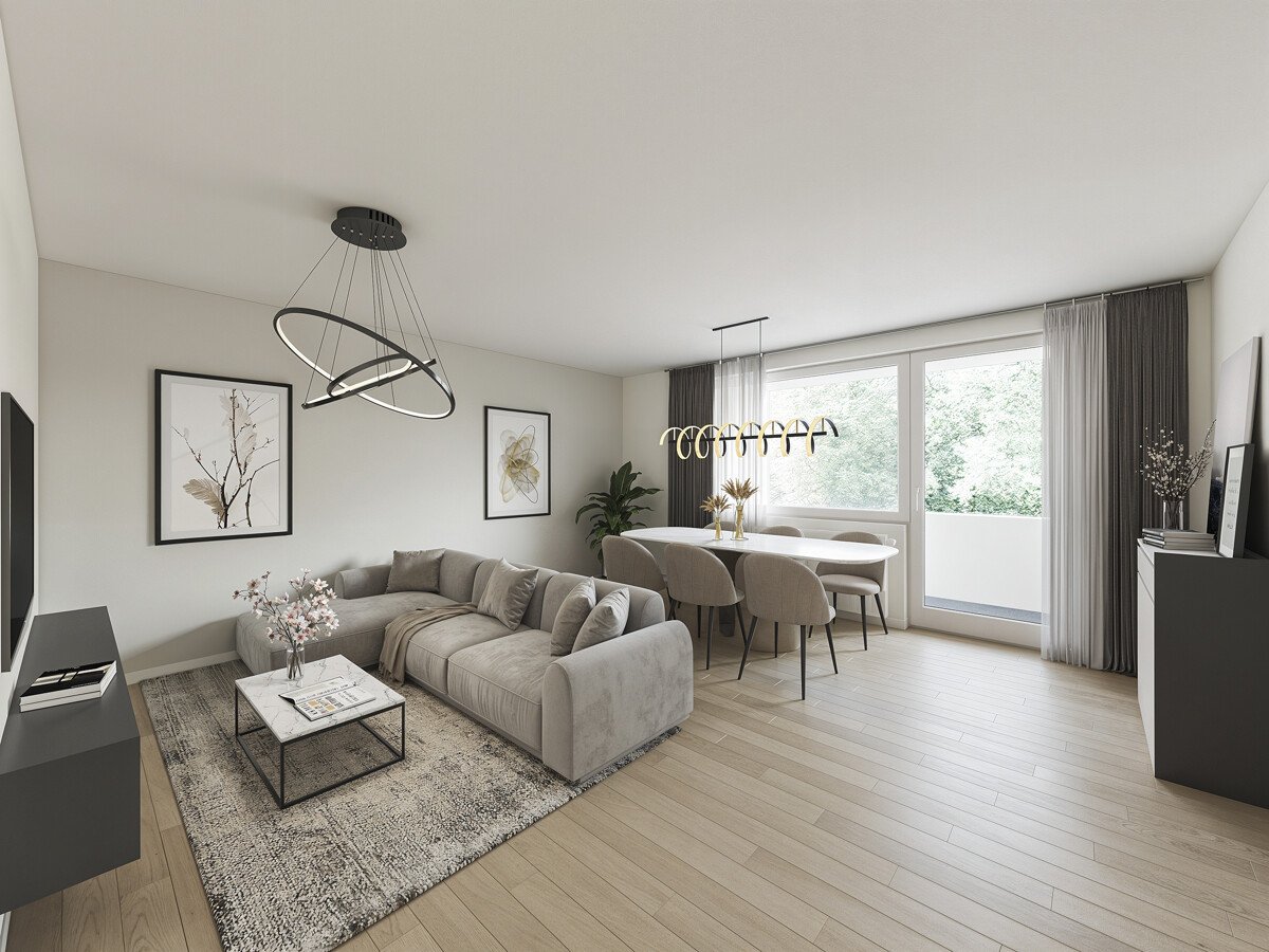 Die Wohnfläche beträgt ca. 76 m² und verteilt sich auf drei Zimmer mit einer durchdachten Raumaufteilung.