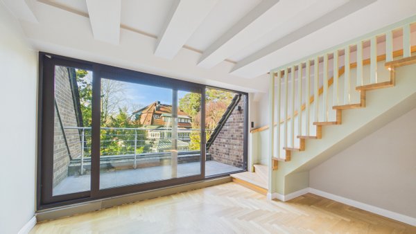 Willkommen in diesem luxuriös sanierten Penthouse in einer sehr kleinen Wohnungseigentümergemeinschaft mit nur 4 Einheiten. Diese Maisonette-Wohnung inmitten einer grünen Oase lässt keine Wünsche offen.