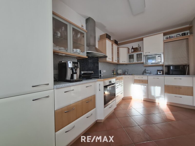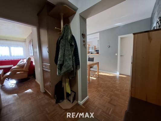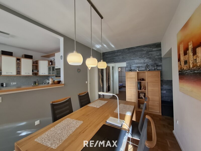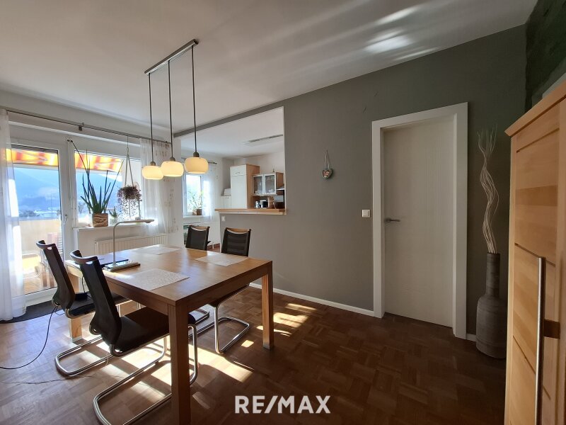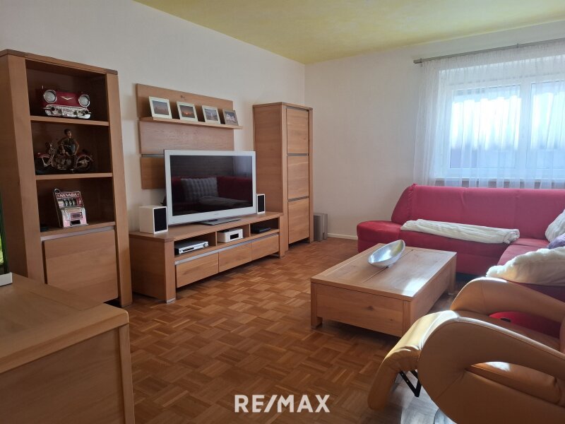 Beim Betreten gelangen Sie in ein freundliches Vorzimmer, das ausreichend Platz für Garderobe und Stauraum bietet. Das Wohnzimmer ist hell und geräumig – perfekt für gemütliche Abende oder gemeinsame Stunden mit Familie und Freunden. Die Essdiele bietet direkten Zugang zur Loggia (8,7 m²), ausgestattet mit Markise und Rollläden, auf der Sie sonnige Stunden entspannt genießen können.