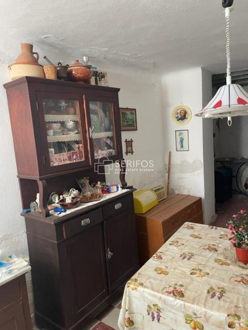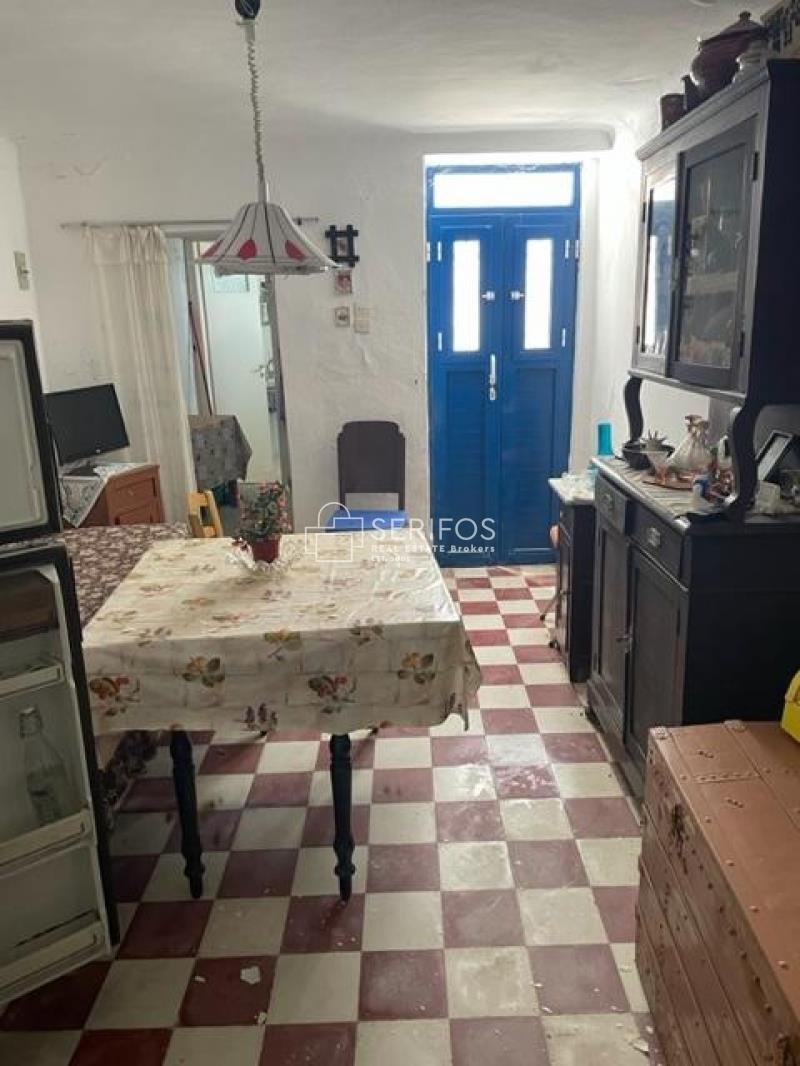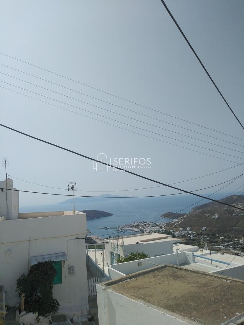 Serifos/Kato Chora. Zweistöckiges Haus mit insgesamt 67 m² auf einem Grundstück von 44 m². Im Bereich Kato Chora. Im Erdgeschoss befinden sich das Wohnzimmer, die Küche, das Badezimmer, ein Zimmer, das als Abstellraum genutzt werden kann, und der Hof mit Blick auf die engen Gassen. Im Obergeschoss befindet sich das Schlafzimmer, ein weiteres Wohnzimmer und eine große Terrasse mit Blick auf Livadeia und Chora.
