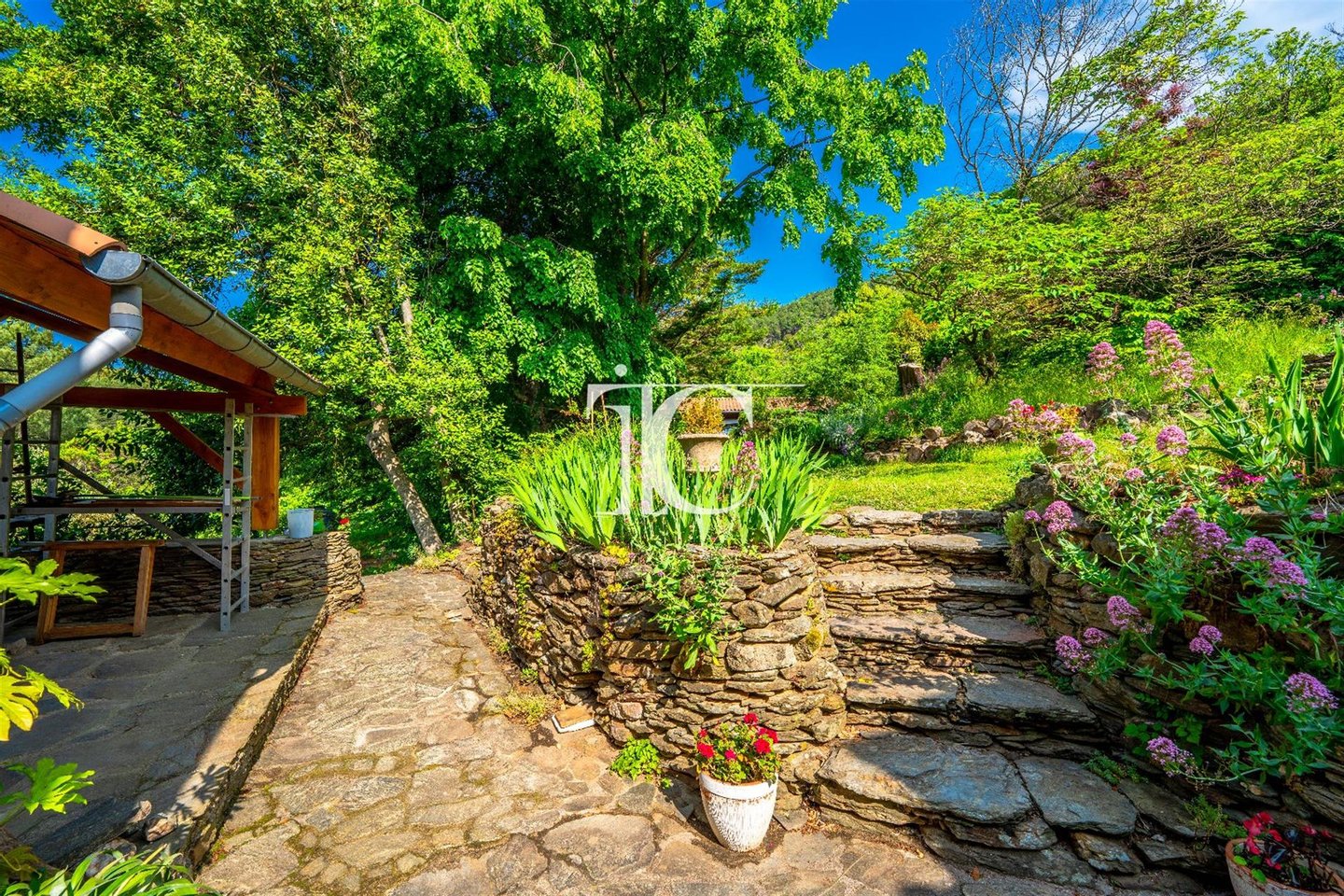 Zu verkaufen, an der Grenze zwischen Gard und Ardèche, am Rande des Nationalparks Cévennes. Authentisches Steinhaus aus den Cévennes, eingebettet in eine grüne Oase. Diese Immobilie besteht aus zwei unabhängigen Wohneinheiten. Der Hauptteil bietet