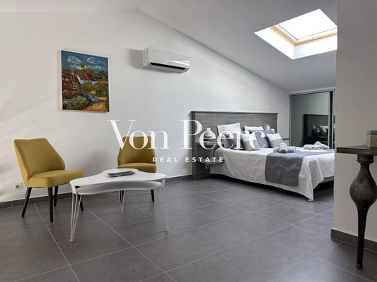 Im Herzen der provençalschen Landschaft gelegen, in einer ruhigen Umgebung weniger als 10 Minuten vom Zentrum von Saint-Rémy-de-Provence entfernt, befindet sich diese Wohnung in einer vertraulichen Wohnanlage mit nur vier Einheiten und bietet einen Pool sowie einen gestalteten Garten. Die Immobilie eröffnet eine warme und helle Atmosphäre mit einem großzügigen Wohnbereich, der ein gemütliches Wohnzimmer, eine offene Küche, eine schöne Suite, ein Badezimmer, zwei Toiletten, eine Waschküche und eine private Terrasse umfasst, ideal für Momente der Entspannung im Freien. Die Gemeinschaftsbereiche, ideal angelegt, laden dazu ein, den provenzalischen Lebensstil in vollen Zügen zu genießen: Ein großes Poolhaus mit Sommerküche, eine Duschkabine und Toiletten ergänzen den von Sonnenliegen gesäumten Pool in einem sorgfältig bepflanzten Garten. Ein Boccia-Platz und ein Parkplatz, der mehrere Fahrzeuge aufnehmen kann, vervollständigen das Gesamtbild. Eine seltene Immobilie, ideal als Zweitwohnsitz oder als Anlage, mit hervorragender Vermietungsausbeute in einer privilegierten Lage, nur 2 km vom Zentrum von Saint-Étienne-du-Grès und seinen Geschäften entfernt. Grundnummer 3