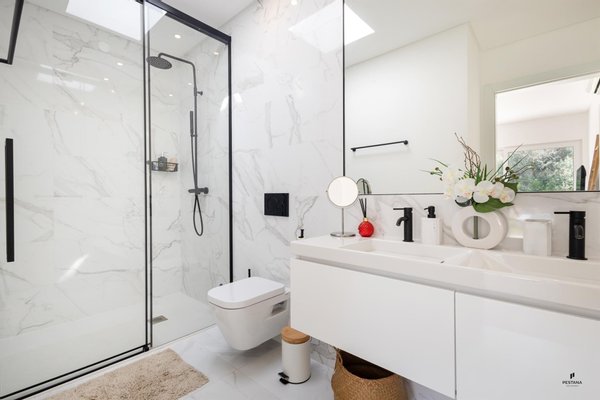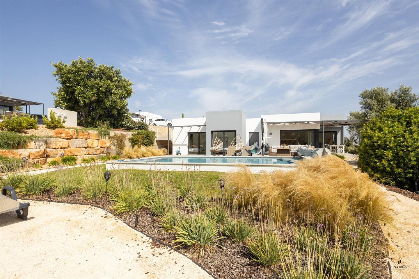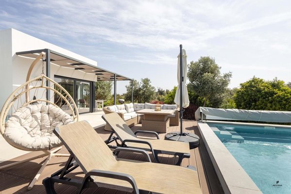 Dieses angenehme Haus im zeitgenössischen Stil verfügt über einen großzügigen Außenbereich mit privatem Schwimmbad. Die elegant ausgestattete offene Küche und das Wohnzimmer haben große Fenster, die Helligkeit und einen Blick auf das mit einer