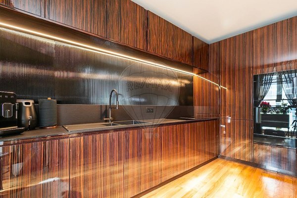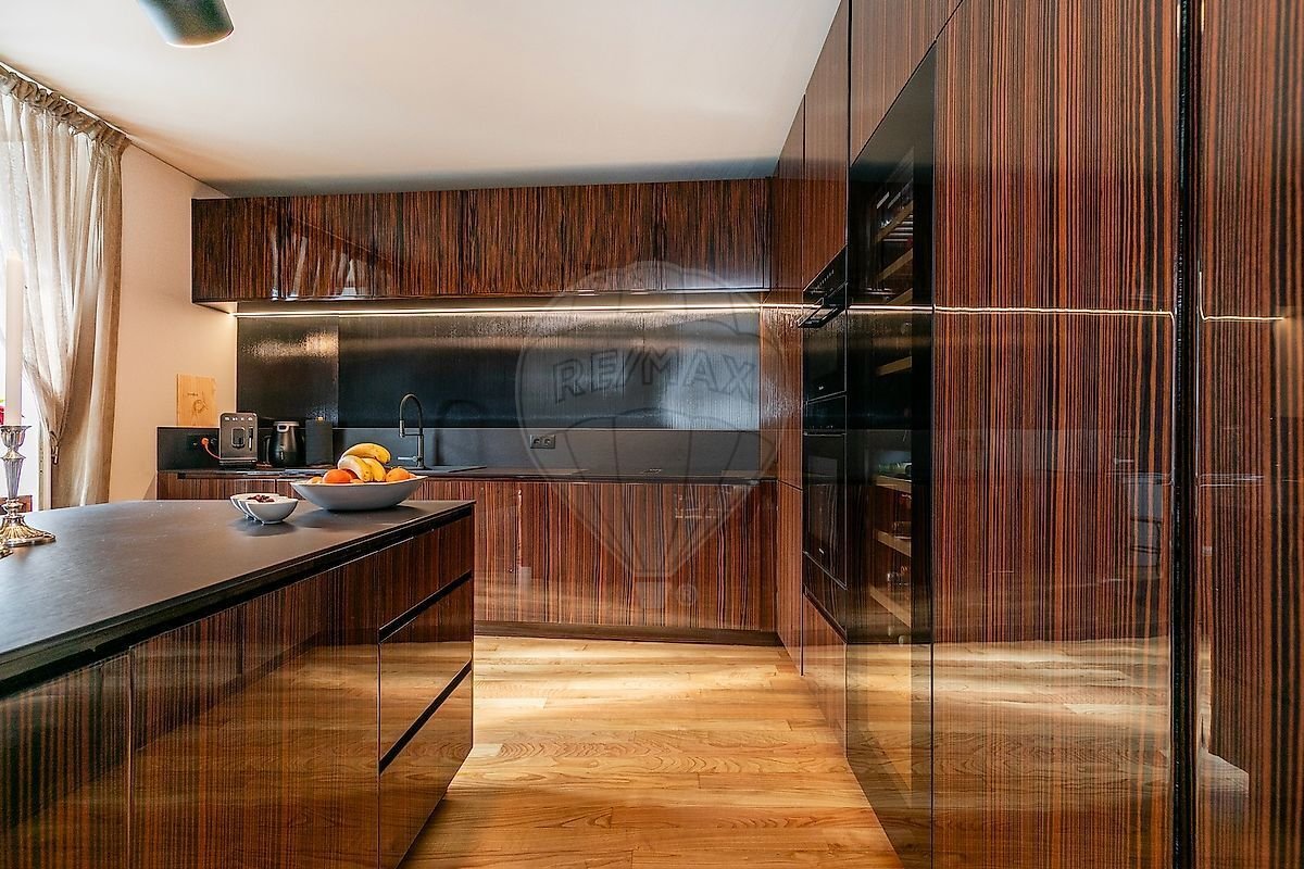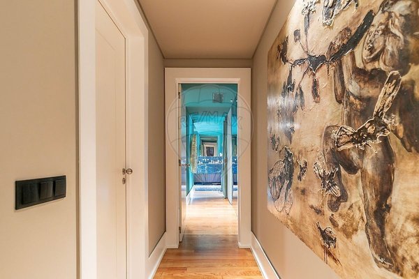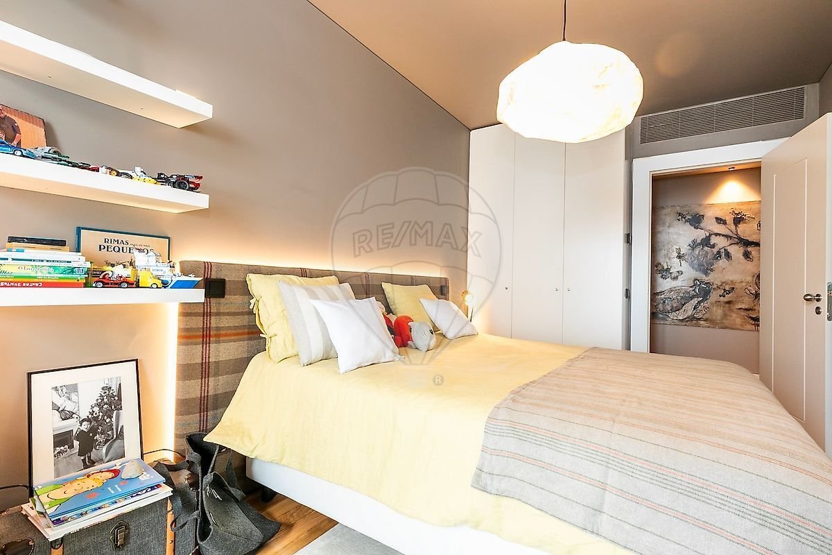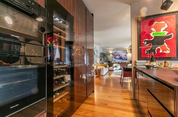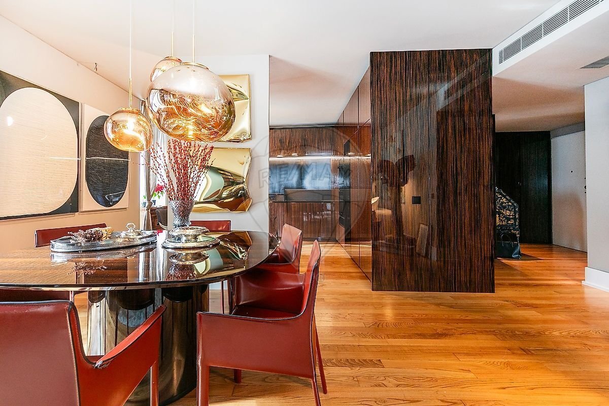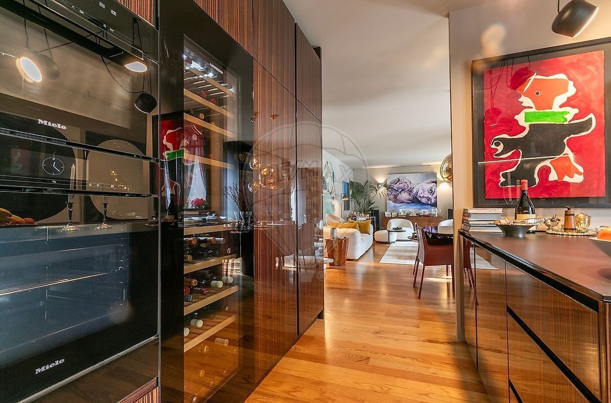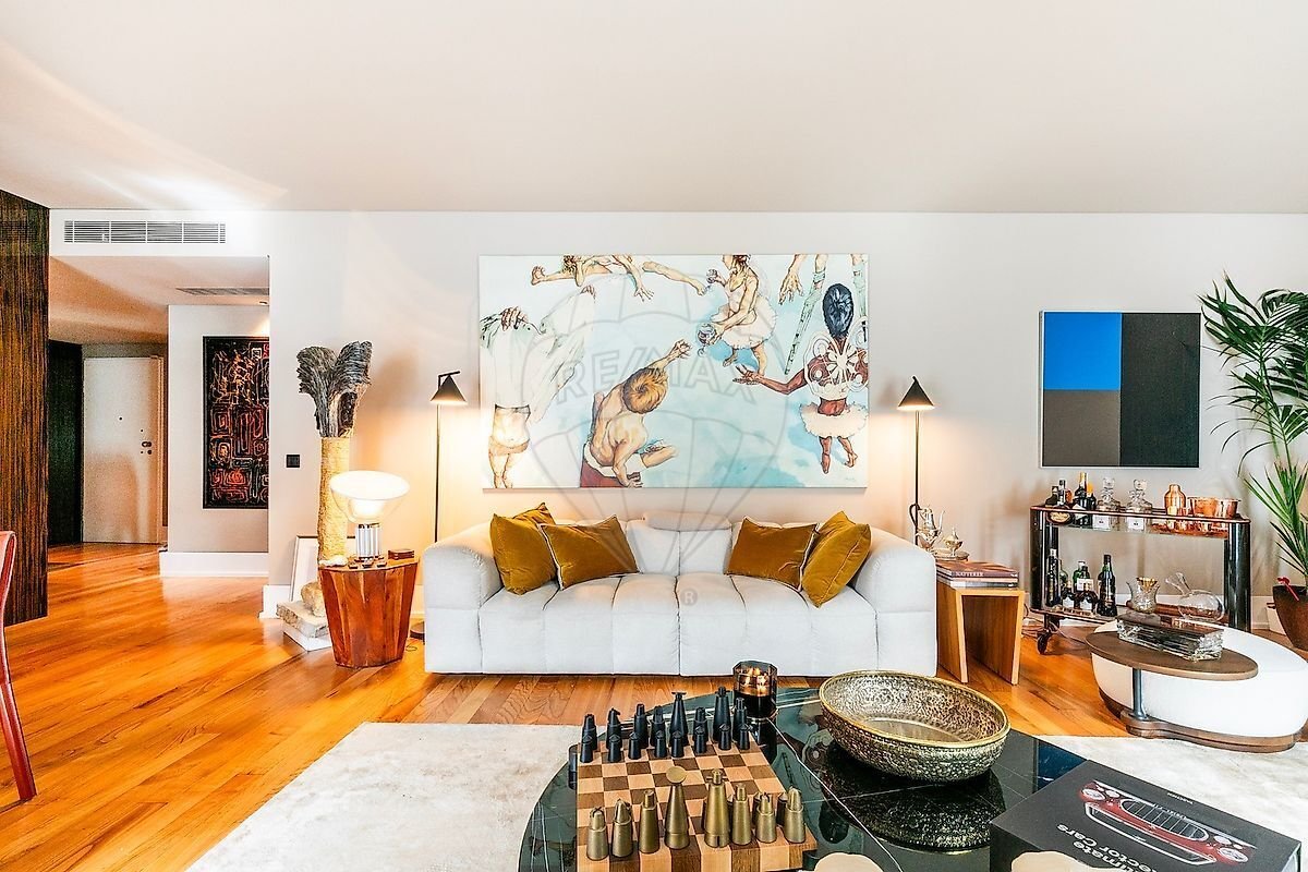 Beim Betreten der Wohnung stehen Sie vor einem großen Wohnzimmer, das in zwei exquisite Umgebungen unterteilt ist, die durch außergewöhnliches natürliches Licht bereichert werden, das durch die großen Fenster geschaffen wird, die einen Teil der Wände schmücken, und den eleganten Kamin, der nicht unbemerkt bleibt. Es verfügt über eine Küche mit modernen Linien und hervorragenden Materialien, die komplett mit MIELE-Geräten ausgestattet ist, und ein Gästebad, das den gesamten sozialen Bereich beschreibt. Der private Bereich besteht aus einer großzügigen Master-Suite, zwei Schlafzimmern und einem Badezimmer, um die Schlafzimmer zu unterstützen.