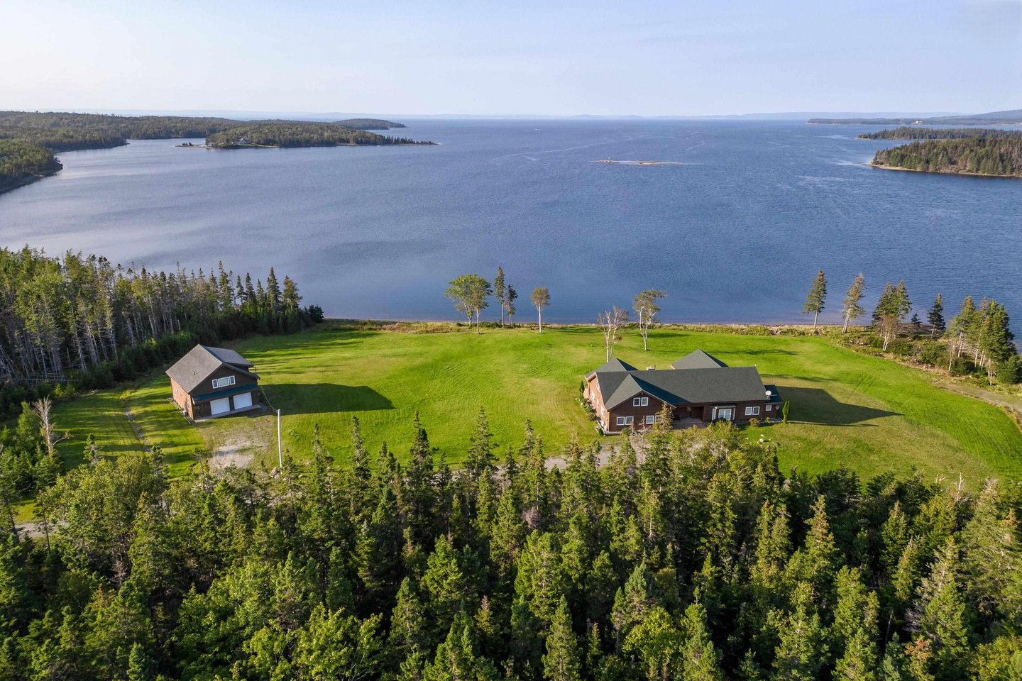 Entdecken Sie Ihr eigenes Stück Paradies auf Cape Breton Island mit diesem außergewöhnlichen Executive-Haus und Gästehaus, das am Ende einer friedlichen Halbinsel liegt, nur wenige Minuten vom charmanten Dorf St Peter's entfernt. Mit atemberaubendem