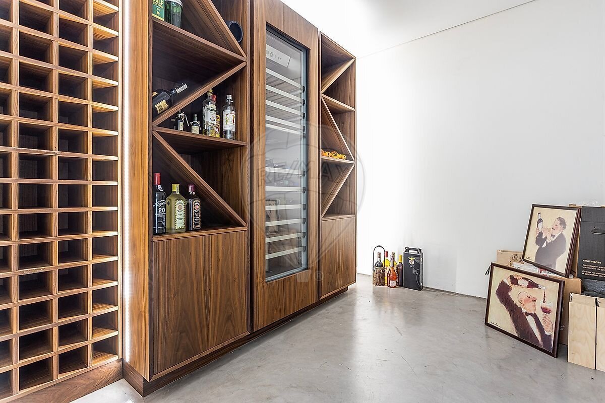 Lower floor: parking for 6 cars (3 in a garage and 3 in an outdoor space), office, laundry room, wine cellar, storage room and a full bathroom.