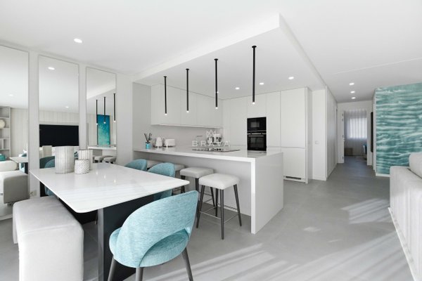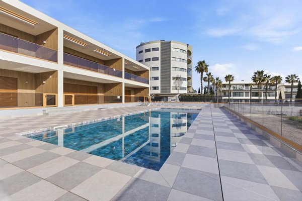 Eine brandneue 2-Zimmer-Wohnung in Forte Novo, in Quarteira, mit Meerblick und einem großen Balkon sowie bereits vorinstalliertem Bereich mit Außenküche und/oder Grill. In ein neues Gebäude mit Salzwasserpool eingebettet.