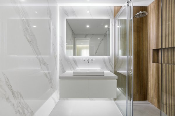 Zwei Schlafzimmer mit eingebautem Kleiderschrank, eines davon mit eigenem Bad und großer Dusche