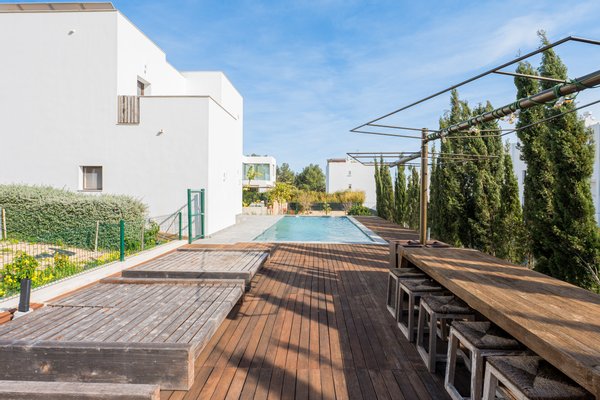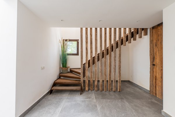 Das Haus verfügt über drei Schlafzimmer mit eigenem Bad, eine Gästetoilette, eine Garage, Solarpanels und einen großen Keller (139,34 m²) mit einem technischen Raum sowie die Möglichkeit, ein Fitnessstudio oder einen Wellnessbereich einzurichten. Der Wohnbereich ist mit der Terrasse und dem hinteren Garten verbunden, während sich vorne das Schwimmbecken mit Solarium befindet, wodurch zwei verschiedene Außenbereiche entstehen.