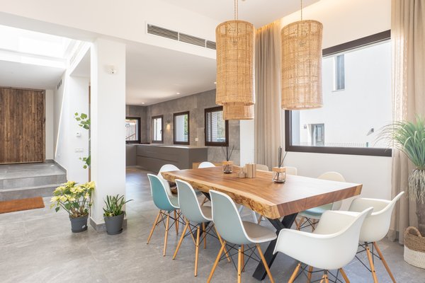 RE/MAX Isla Blanca präsentiert diese elegante moderne Villa in Santa Eulalia del Río, gelegen in einem der begehrtesten Wohngebiete Ibizas. Es wurde 2020 erbaut und bietet 436,61 m² auf einem Grundstück von 604,71 m² und verbindet zeitgenössische Architektur mit Holz und Naturstein, die Wärme und Eleganz bringen.