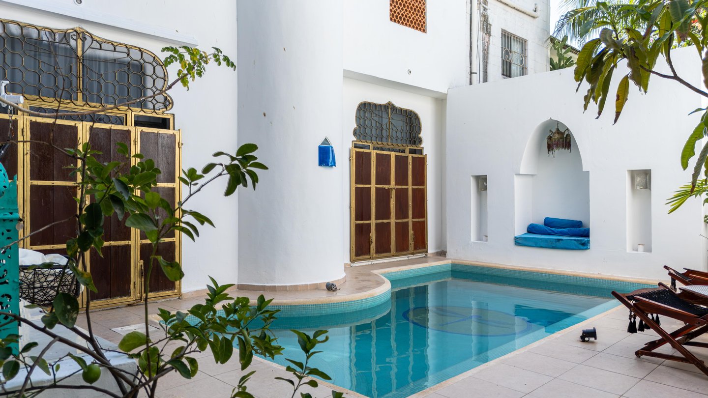 A standalone private house with its own pool, plus a separate apartment building with multiple independent units, all sold as one exclusive package.