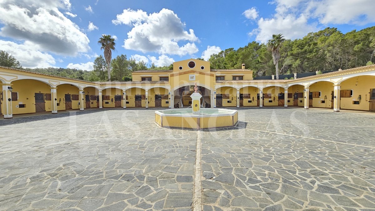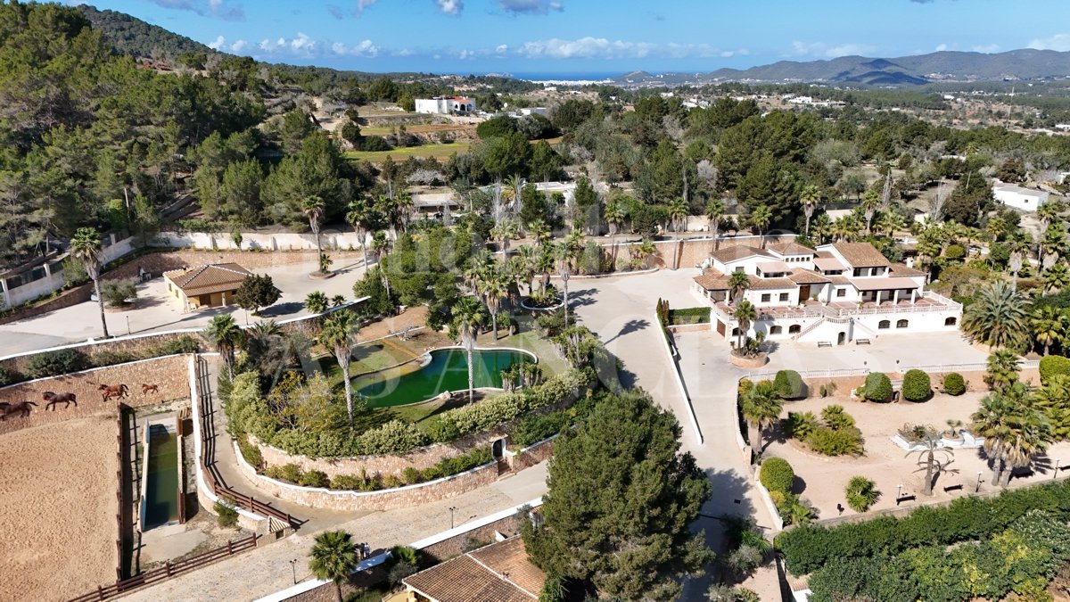 Wir präsentieren eine wahrhaft einzigartige Immobilie auf der Insel Ibiza – etwas Vergleichbares werden Sie nicht finden. Dieses andalusisch inspirierte Anwesen beherbergt eine renommierte Pferdezucht für reinrassige spanische Pferde (PRE), die international ausgezeichnet und anerkannt ist.