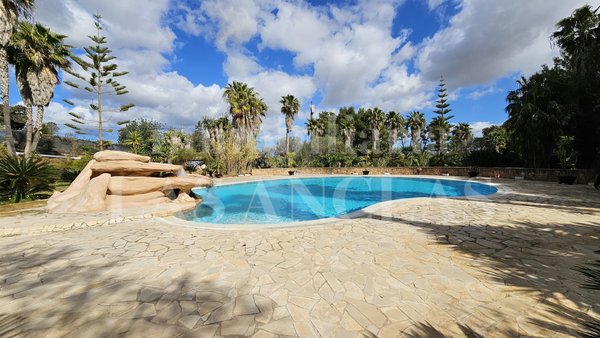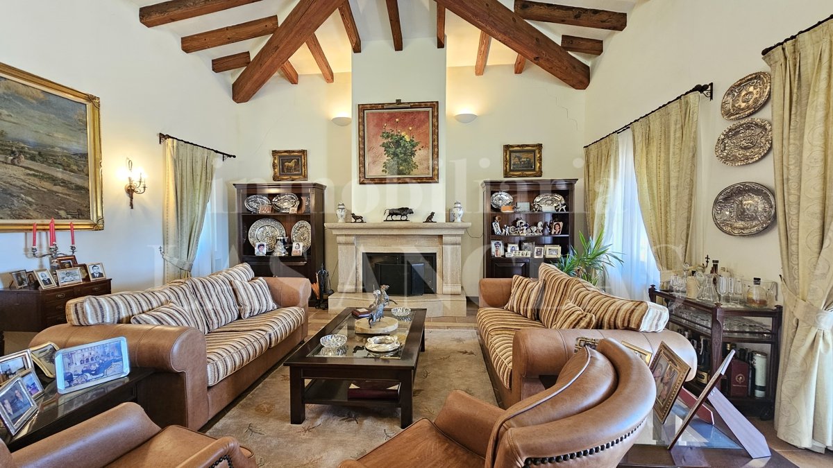 Mit über 5.000 m² bebauter Fläche erstreckt sich die Finca über weitläufige, gepflegte Gärten, Natursteinmauern und perfekt angelegte Reit- und Trainingsbereiche und bildet ein außergewöhnliches architektonisches Ensemble.