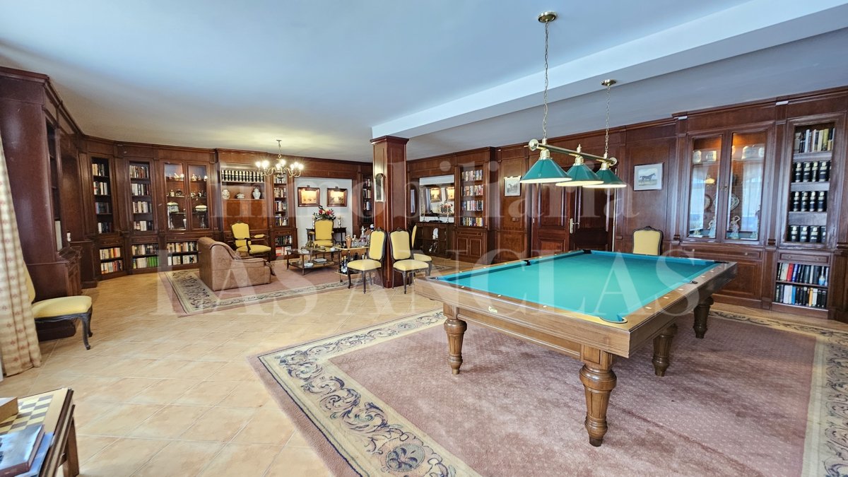 Im Untergeschoss befinden sich ein Weinkeller, ein Spielzimmer, ein Büro, große Lagerräume, eine Garage sowie ein Apartment für das Personal.