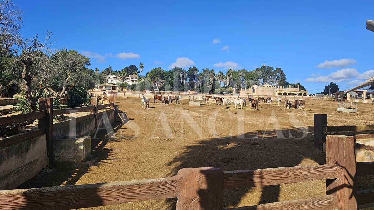 Wir präsentieren eine wahrhaft einzigartige Immobilie auf der Insel Ibiza – etwas Vergleichbares werden Sie nicht finden. Dieses andalusisch inspirierte Anwesen beherbergt eine renommierte Pferdezucht für reinrassige spanische Pferde (PRE), die international ausgezeichnet und anerkannt ist.