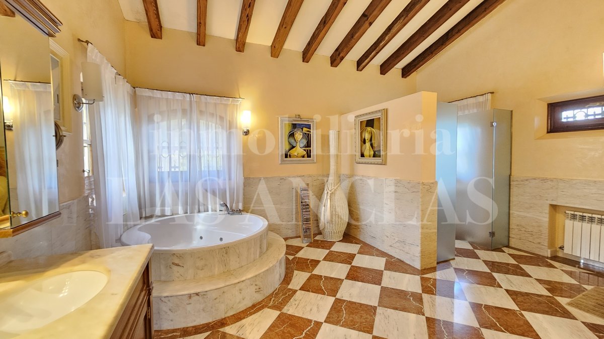 Mit über 5.000 m² bebauter Fläche erstreckt sich die Finca über weitläufige, gepflegte Gärten, Natursteinmauern und perfekt angelegte Reit- und Trainingsbereiche und bildet ein außergewöhnliches architektonisches Ensemble.