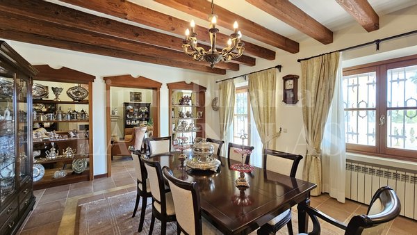 Die Hauptvilla, in erhöhter Lage mit Blick über das gesamte Anwesen, verfügt über fünf Schlafzimmer mit en-suite Badezimmern, mehrere Wohnräume, eine Bibliothek, eine Küche mit Vorratsraum sowie großzügige Terrassen.