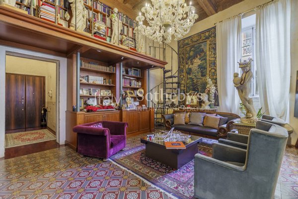 Derzeit in drei unabhängige Wohnungen unterteilt, lässt sich die Immobilie als eine außergewöhnliche, großzügige Residenz neu interpretieren, die Geschichte, Weite und Komfort miteinander verbindet, oder als Wohnlösung, die Unabhängigkeit und Privatsphäre für unterschiedliche Bedürfnisse bietet. Die wertvollen Kassettendecken aus Holz mit einer Höhe von 5 Metern verleihen den Räumen eine monumentale Ausstrahlung.